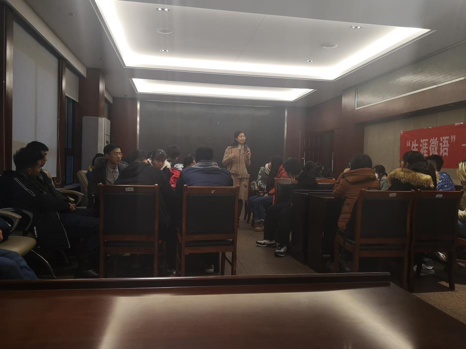 2018125号星期三下午五点半,地球科学与环境工程学院菁英课堂选修模块之职业生涯讲座在X4520开展,本次的主讲老师是来自招生就业处的彭老师,在做过简单的自我介绍过后,彭老师直入主题,给大一的同学们介绍职业生涯规划。