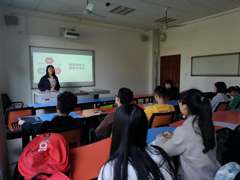 讲座的开始,孙老师首先从班干部的角色定位开始讲起,她说道,班委是辅导员和同学的中间人,需要替老师分担,为同学服务。同时,班干部在负责各项活动要秉持认真负责的态度,各班委之间要相互配合,各项工作要大家共同开展,提升班干部的工作能力。其次讲到了思想定位,我们是社会主义的接班人,需正确的价值引导和准确的未来定位,对于一个班级来说,团队观念是至关重要的,所以班委们要明确什么是班级干部,怎么做好一名班级干部。