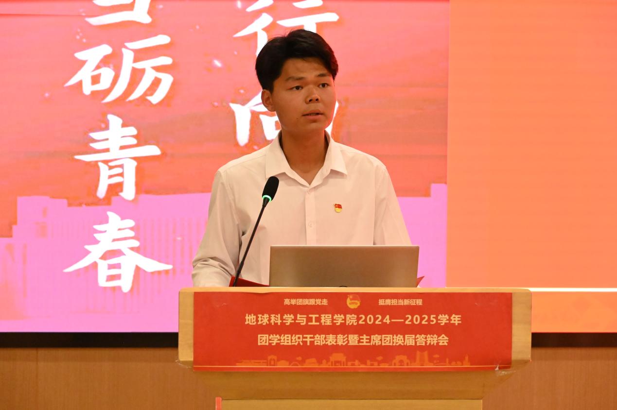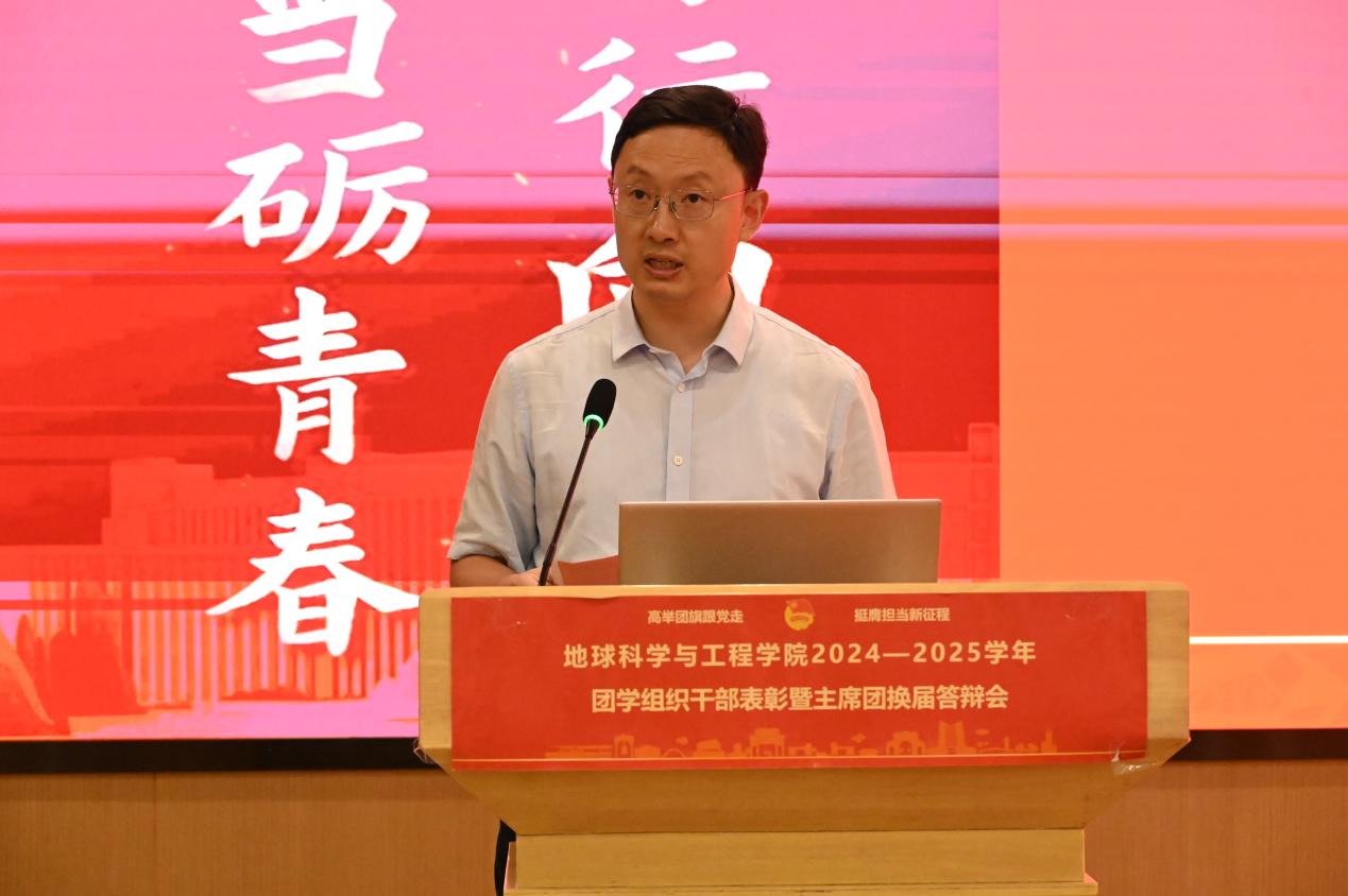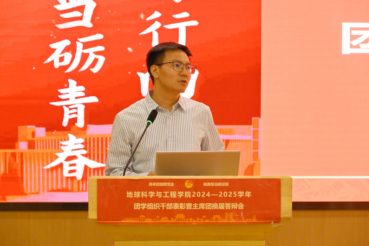 团委书记杨都强老师作总结发言。他强调,地学学子幸逢盛世,趁青春应当深耕自我。衷心希望每一位团学组织骨干成员能在未来的学习工作中,彰显“地学英才,引航未来”的风采,勇担使命,砥砺前行。