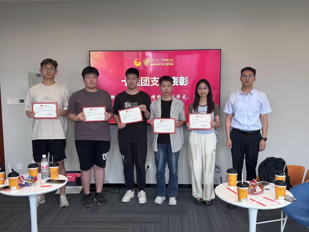会议最后,学院团委对鲍光新、张洪山、林靖怡、刘书文、鱼方瑞五位2022级“十佳团支书”进行表彰。杨都强老师为获奖者颁发荣誉证书并作总结讲话,强调要弘扬“实践育人”的共青团工作传统,充分肯定团支书群体展现的“五心”工作品质,即耐心、热心、恒心、细心、责任心,勉励全体团支书持续发挥示范引领作用。