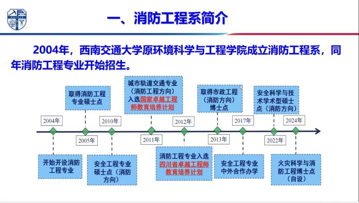 交流会上,高云骥老师从消防系历史入手,详细介绍了师资力量、科研平台、学科发展方向,系统介绍了消防与安全工程两个专业的基本情况。他结合近年毕业生去向数据,分析了相关行业对人才的需求趋势,并重点介绍了校院两级在应急管理、城市公共安全、隧道或地下空间火灾烟气防控等学科重点强势领域开展的联合培养项目,帮助同学们对专业深造路径有了更清晰的认识。