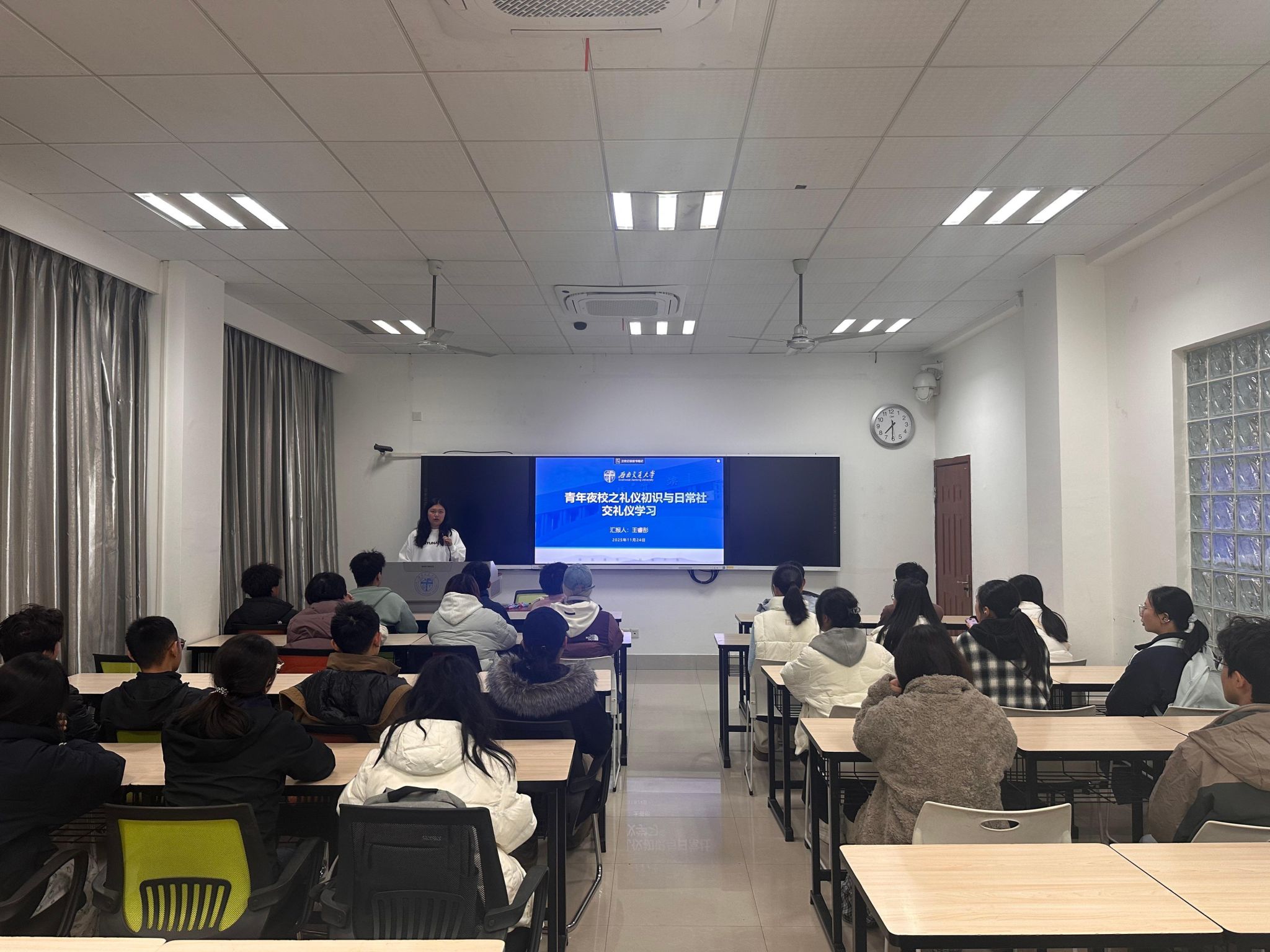 首场夜校论坛——礼仪课在11月24日晚正式开启。王睿彤通过情景演练,让同学们跳出 “礼仪是刻板规矩”的认知。从坐姿站姿的体态调整,到微信沟通的礼貌用语,90分钟的课程把“优雅与沉稳”拆解成可操作的日常习惯。