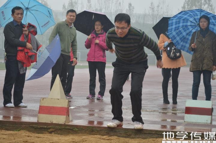 11月14日上午十点半,天空还飘着密集的雨丝,此时运动会教职工男子跳远比赛检录完毕。比赛开始前,总裁判提醒了运动员们认真的进行热身活动和试跳,并简单介绍了该项目的比赛规则和注意事项,参赛的教职工们都认真地倾听并踏实的准备着,他们都希望以自己最好的状态来迎接挑战。