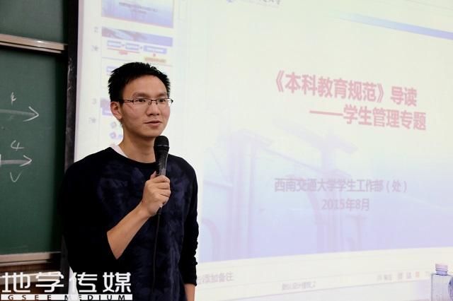 随后杨都强辅导员为同学们进行了本科教育规范讲座,他从三个方面进行了讲解,一是学生管理的约束机制——学生处分,二是学生管理的激励机制——学生奖励,三是学生管理的救济机制——学生申诉,他分别举例,简明扼要,以获奖者为榜样,以受处分者为反面教材,同学们深深地感受到了规范化管理的必要性和神圣不可侵犯性,他表示,“大学是一个沉者自沉,浮者自浮的地方,大学四年过后,两极分化现象相当明显”他告诉同学们,大学的航船是由自己来掌舵,是劈波斩浪勇往直前还是触礁搁浅葬身大海,这一切都是自己来决定的……