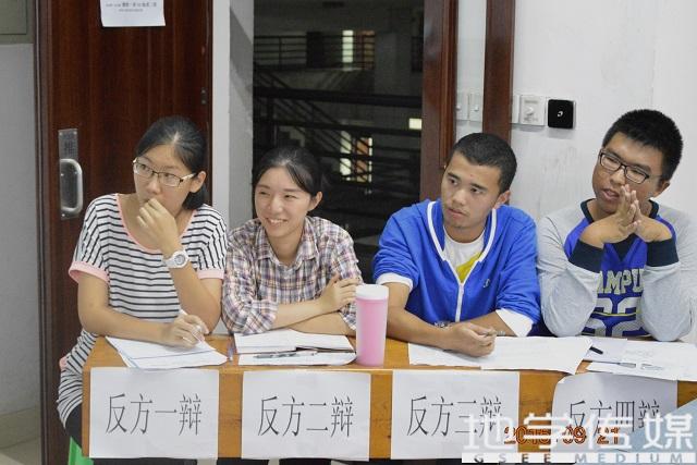 2015年9月21日晚,地球科学与环境工程学院新生杯辩论赛在X7401正式拉开序幕。地质一班与环境五班的辩手们以“全民微信时代增强还是减弱了人与人之间的交流”为辩题进行了辩论。正方:地质一班,坚持的观点为“全民微信时代增强了人与人之间的交流”;反方:环境五班,坚持的观点为“全民微信时代减弱了人与人之间的交流”。
