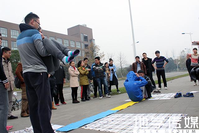 短暂的午餐和休息过后,下午一点半,在北区浙园正式开始最终的决赛,留下的四支队伍经过大浪淘沙,个个都是“精兵强将”。下午第一项活动是“乒乓球投篮大赛”,要求每组选出两名队员相隔足够远的距离,一个掷乒乓球,一个用我们平常用的垃圾筐接球,接到多者为胜,取前三名;下一项活动是直接复制原版《奔跑吧!兄弟》的——“指压板运动会”,相信大家也是比较熟悉,小小的一排指压板可着实让每名队员吃尽了苦头,这项比赛后,又有一支队伍惨遭淘汰;最激动人心的时刻终于到了,然而最后苦苦支撑下来的两支队伍的实力实在相差悬殊,一支队伍四个男生,且都人高马大,另一支队伍则只有三个男生,且身体对抗不占优势,自然,比赛一开始,两支队伍一攻一守,本该“旷日持久”的“名牌大战”在一片唏嘘声中过早地结束了,就像金钟国轻易撕掉王祖蓝的名牌那样变得没有悬念。