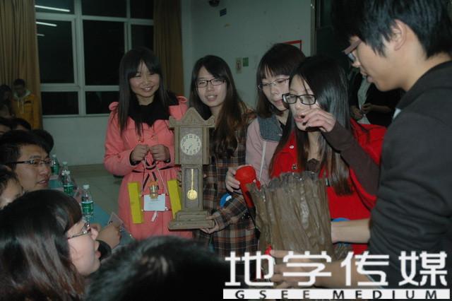在决赛开始前,主持人用ppt展示了本届创意设计大赛初赛的精彩瞬间,43支队伍中,13支队伍脱颖而出,成功晋级决赛。在地学辅导员闫剑致辞后,决赛正式开始。第一支队伍设计主题为“最·清新”,她们利用废弃纸板做成的六组多功能收纳盒,可以用来收集各种杂乱物品,各有功用。同时介绍了她们对低碳的理解及设计目的。才艺展示环节中,改编的歌曲吟唱与大赛主题相契合,赢得评委好感。第二支上场队伍的主题为“破茧成蝶”,她们的作品寓意变废为宝,利用废弃纸板和塑料瓶做成了摆钟、树屋黄头灯、马嘴记事本、存钱罐等作品,新颖又美观,赢得了热烈掌声。其后,各组队伍依次上前展示了各自的作品,并进行了精彩的才艺展示。其中,第九组选手用废弃塑料瓶制作的“大黄蜂”让人颇为震撼,富有创新精神的选手们还为其编写了程序,安装了音响和绚丽的灯光,可谓妙绝。第十一组选手的作品也十分有特色他们利用纸板、颜料、塑料瓶等做成了造型别致、结构巧妙的女生专用三件套“玩具收纳箱、零食收纳筐、萌士百宝收纳箱”,《这就是爱》歌曲的演唱也非常成功,赢得了观众的赞誉。其后,第十二组选手也不甘示弱,用废品做成了一系列与生活息息相关的物品,其中球形台灯最为吸引人,尽展艺传妹子的文艺清新。