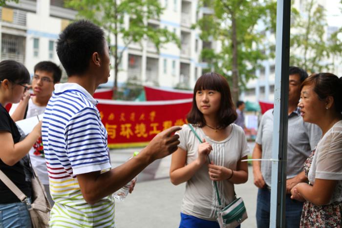 党委副书记傅尤刚老师、各级辅导员和众多学生干部。在准备妥当迎新点后,工作人员就开始等待本院新生的到来。在学院报到是新生入学的第一个步骤,迎新处的志愿者们不但保证了新生报到的效率,更想尽办法为新生及家长提供方便。如在办公桌前摆放了凳子,供新生与家长休息,并为其提供了纯净水,极大地缓解了他们的疲惫。自我管理中心的同学们有条不紊地帮新同学办理入学手续,填表格,发放材料,详细讲解新生报道程序。青协的同学负责带领新生去寝室,一路上为他们解答疑惑,舒缓了新生紧张不安的情绪。13级辅导员田凤晓老师告诉记者,今年地学迎新工作流程更加简单,极大的方便了新生的报到注册,保证了现场新生无滞留状态。此外,学院还为新生准备了相关资料、时间安排表等物品,以帮助同学们更好的融入大学生活。