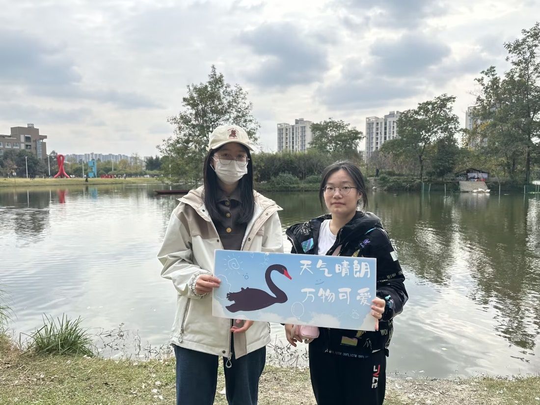 活动的尾声,参加此次活动的同学们在犀湖前自由拍照打卡与天鹅互动,在犀湖前集体合照留念,本次活动在同学们的欢声笑语中圆满结束!