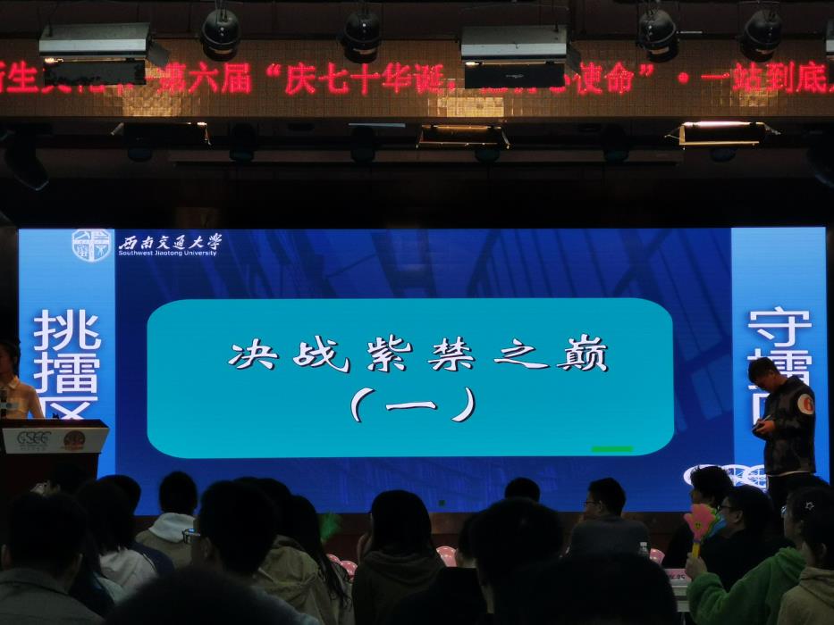 随着比赛的进行,本次比赛也来到了最精彩的——决战紫禁之巅,晋级比赛的6位选手,两两一组,展开车轮战。在知识的交锋中摩擦生出的是智慧的火花,伴随而来的是现场观众的欢呼和掌声。各位选手展现了个人的渊博知识,为自己的成绩努力奋战着, 台下的观众也是捏了一把汗,现场气氛愉快而又紧张。大屏幕上的题目一道又一道的出现,各位选手紧盯屏幕,同时也努力的在自己的脑海中搜寻着信息。经过一段激烈的比拼,各位选手终于决出了名次。