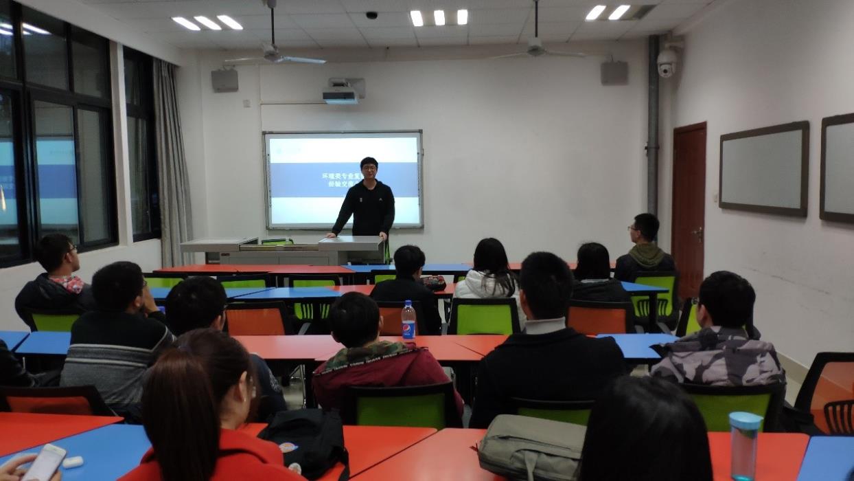 在X4131教室里,主持人首先做了简短的开场词,接着环境专业的刘策学长分别从笔试、面试两个方面介绍复试的注意事项,并提到了个人简历、英语以及专业课的重要性,并展示自己与另一位优秀学长的简历,让大家更加深刻地认识到考研复试的其重要性。接着消防专业的魏红玉学姐现身说法,分享自己去年的考研经验,随后现场的同学们积极地提问,学长学姐一一详尽回答。