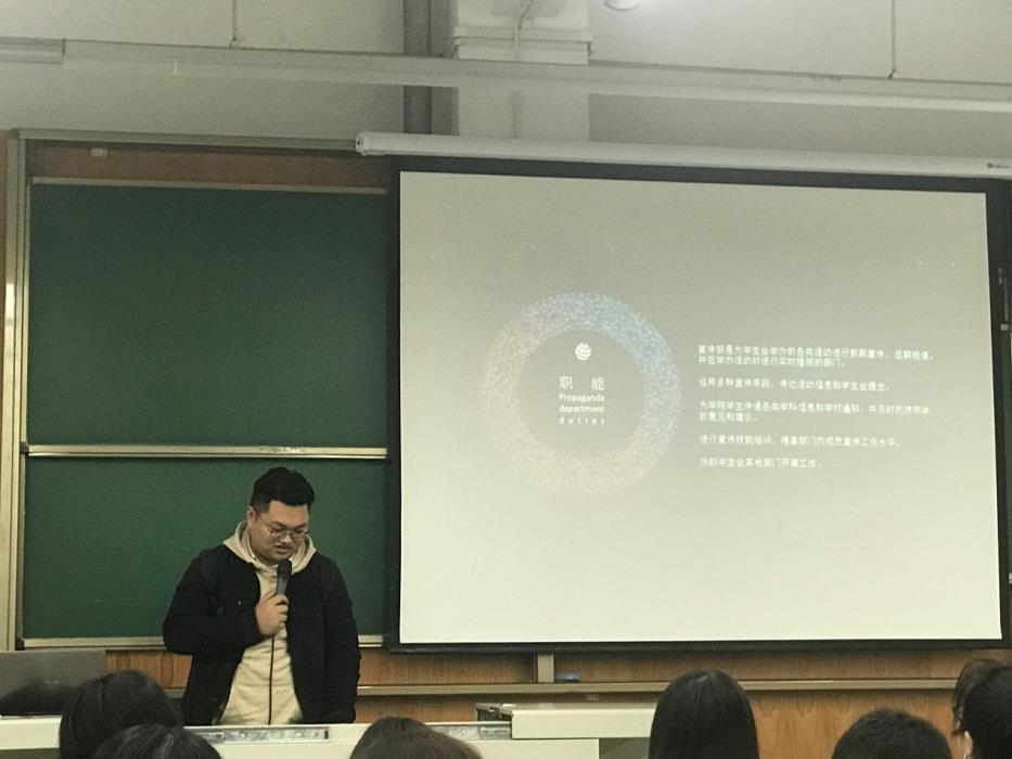 为完善学生会内部管理,总结上学年学生会内各项工作开展情况,地球科学与环境工程学院学生会于2019年3月7日晚在X4152教室举行了2018-2019学年院学生会部门述职大会。会议由学生会办公室部长主持。