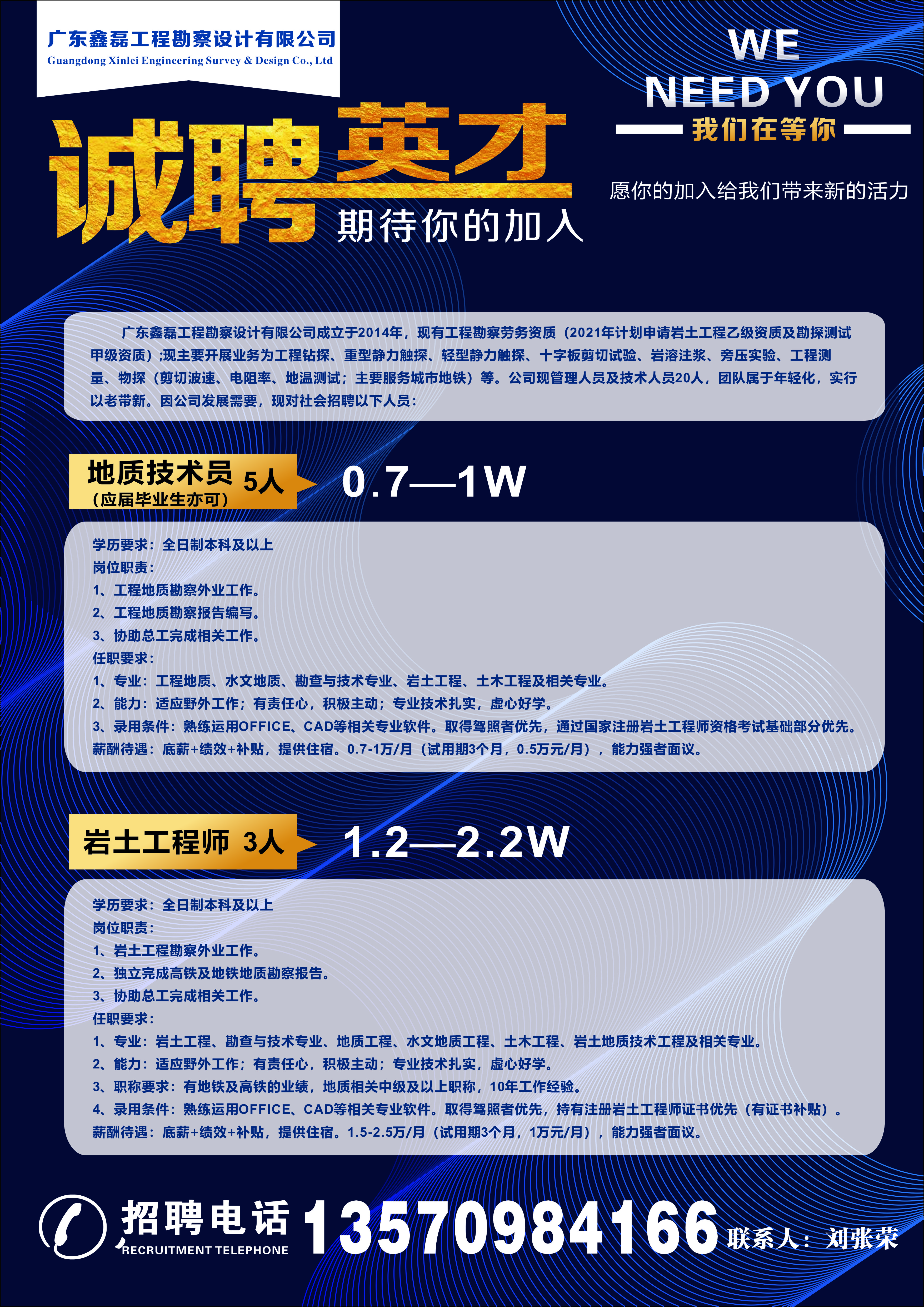 【招聘】广东鑫磊工程勘察设计有限公司