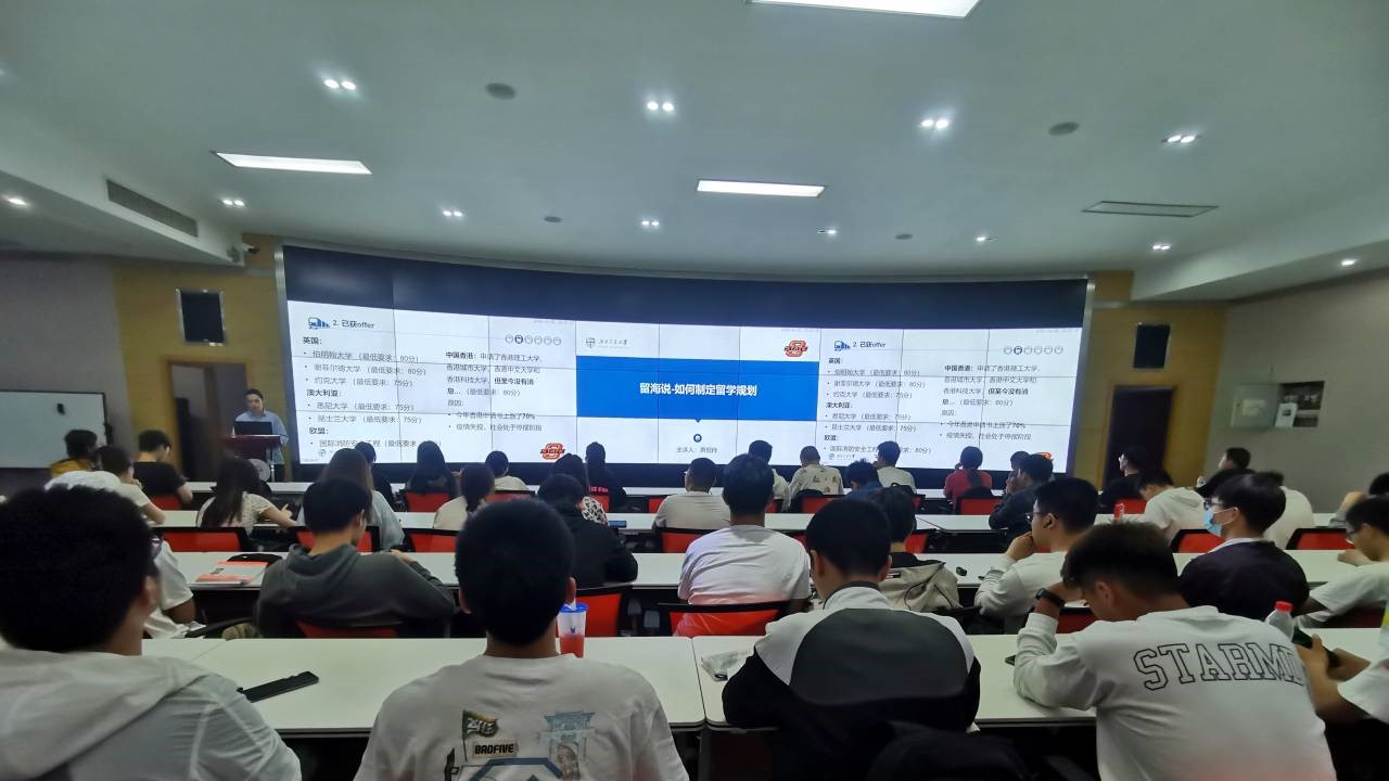 安全工程大四在读优秀学长萧琨铧同学主讲,讲座主题为“如何制定留学规划以及留学的经验分享”。