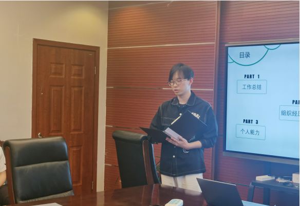 在表达了对获奖同学祝贺后,本次换届大会也来到了尾声结尾致辞环节,由就业指导中心指导老师王姝歆发表工作总结讲话。