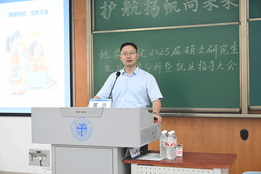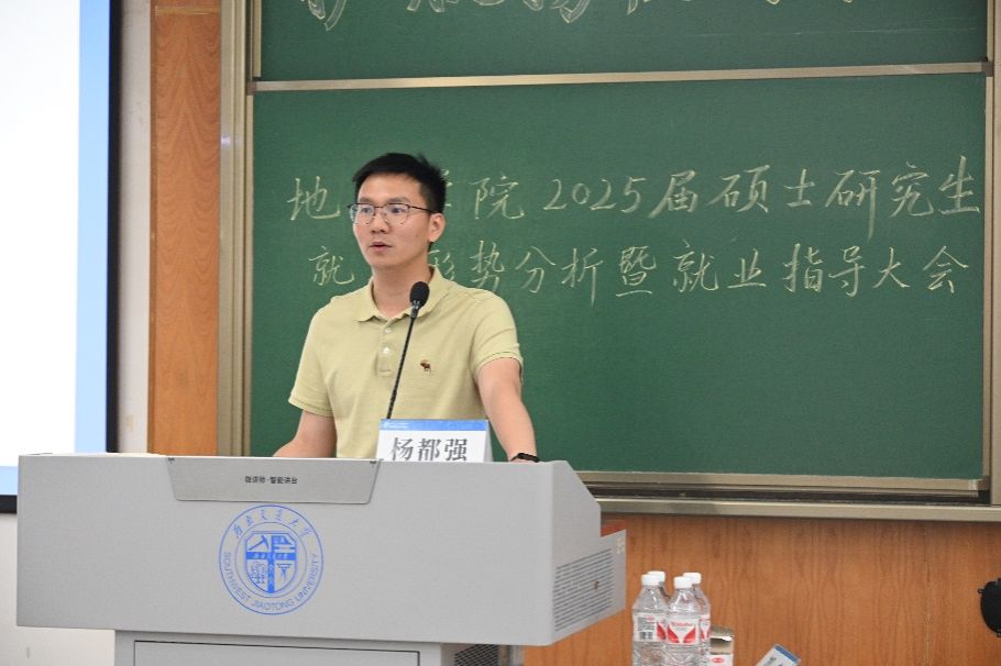 于犀浦校区X4350教室举办了2025届硕士研究生就业形势分析暨就业指导大会。本次大会由学院党委副书记郑波及团委书记、就业工作负责人杨都强主讲,研2022级辅导员李林遥主持,辅导员文强及全体2025届硕士研究生参加。