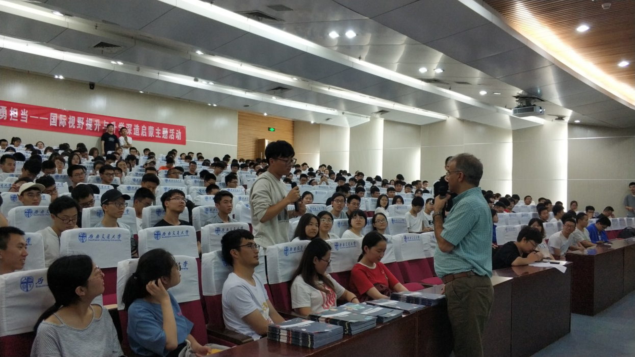 随后,Saeid老师以“Is Communication Beyond the Shared Languages? ”为题,开展了关于交流沟通话题的演讲,Saeid老师激情昂扬的全英演讲受到了同学们的热烈回应,师生间互动不断,气氛融洽。
