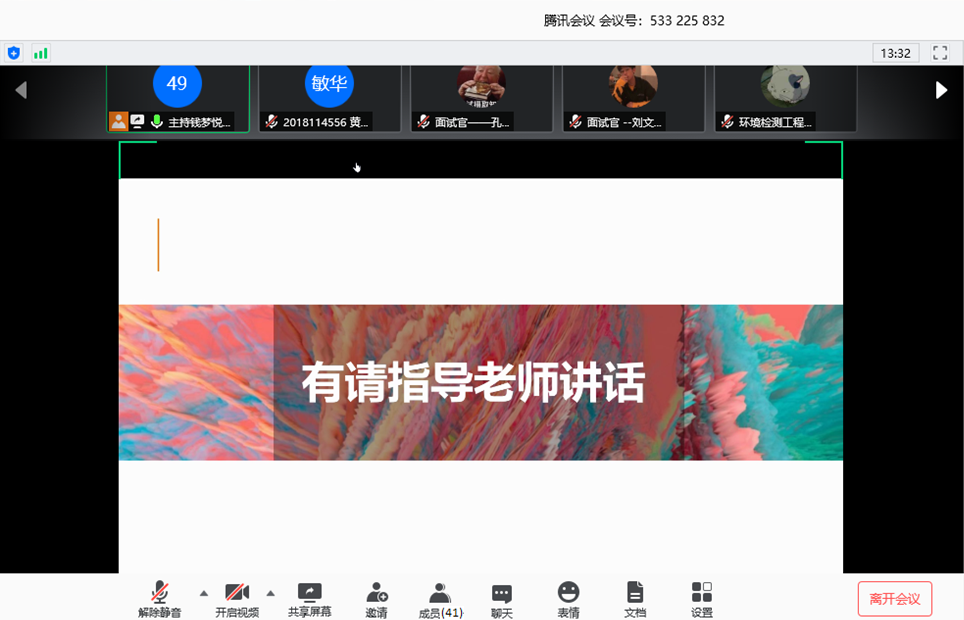 杨老师勉励同学们在疫情期间,充实自己,进行将来的规划,学会必要的求职技能,也对今天组织比赛的工作人员和参赛选手表示支持和鼓励,并预祝今天的活动圆满结束。