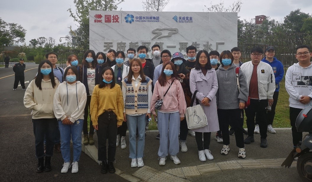 首先,全体同学于10日中午12:50准时在学校北区校车站集合,全体同学和老师佩戴口罩,检测体温后,乘上校车出发前往目的地。在路途上,杨老师和同学们一起聊天,互相拉近了距离,增进了感情。到达目的地后,我们在天府新区第一再生水厂的门口集合并进行了合影。