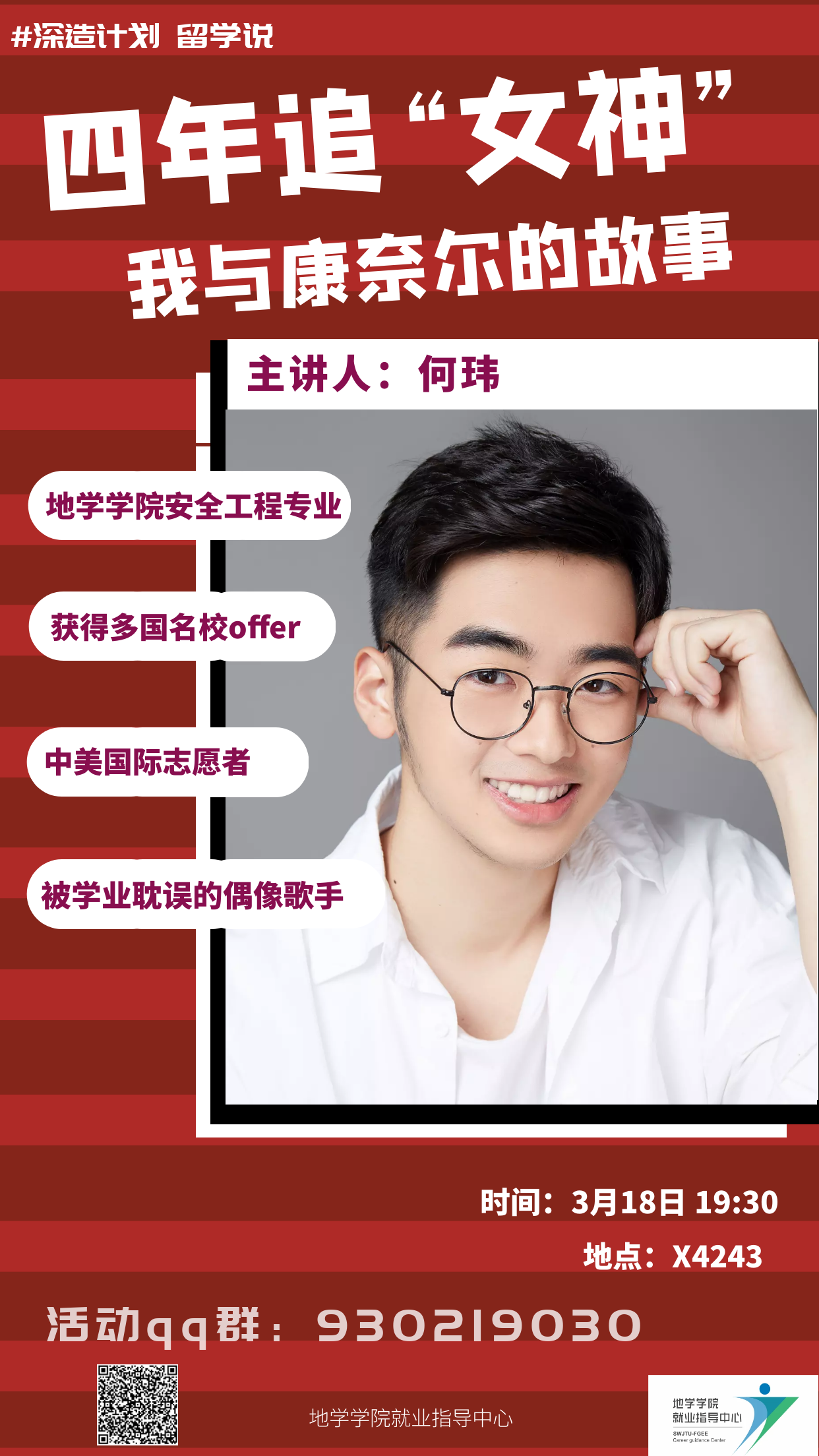 本活动旨在为有相关留学意愿和需求的本科生与有经验的优秀学生搭建一个良好的交流平台,实现学生与学生之间资源共享、探讨交流效益的最大化。同时,以学生的视角,更有针对性的帮助本科生们解决疑惑,深度交流,提供有参考性的建议,使学生们更了解留学的相关知识,提高学生国际视野,明确未来的深造规划。欢迎大家踊跃报名参加!现将第一期讲座信息发布如下: