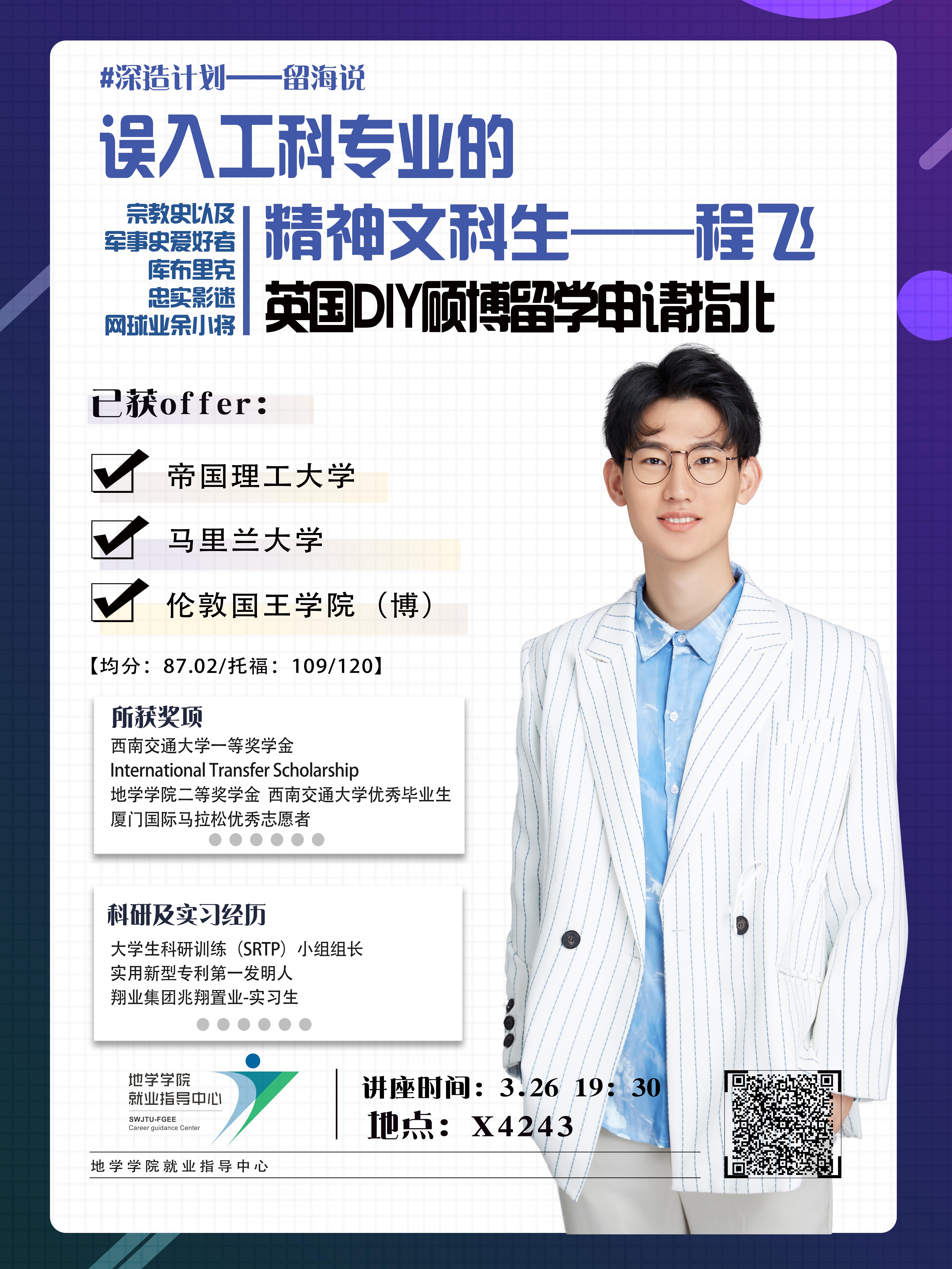 此次活动旨在为有相关留学意愿和需求的本科生与有经验的优秀学生提供一个优质的交流机会,实现学生与学生之间资源共享、更高效率的面对面探讨与交流。同时,过来人的经验,更有针对性的帮助本科生们解决疑惑,带来一些启示和帮助,使学生们更了解留学的相关知识,提高学生国际视野,明确未来的深造规划。第一期讲座已完满结束,现将第二期讲座信息发布如下,欢迎各位同学积极参加!