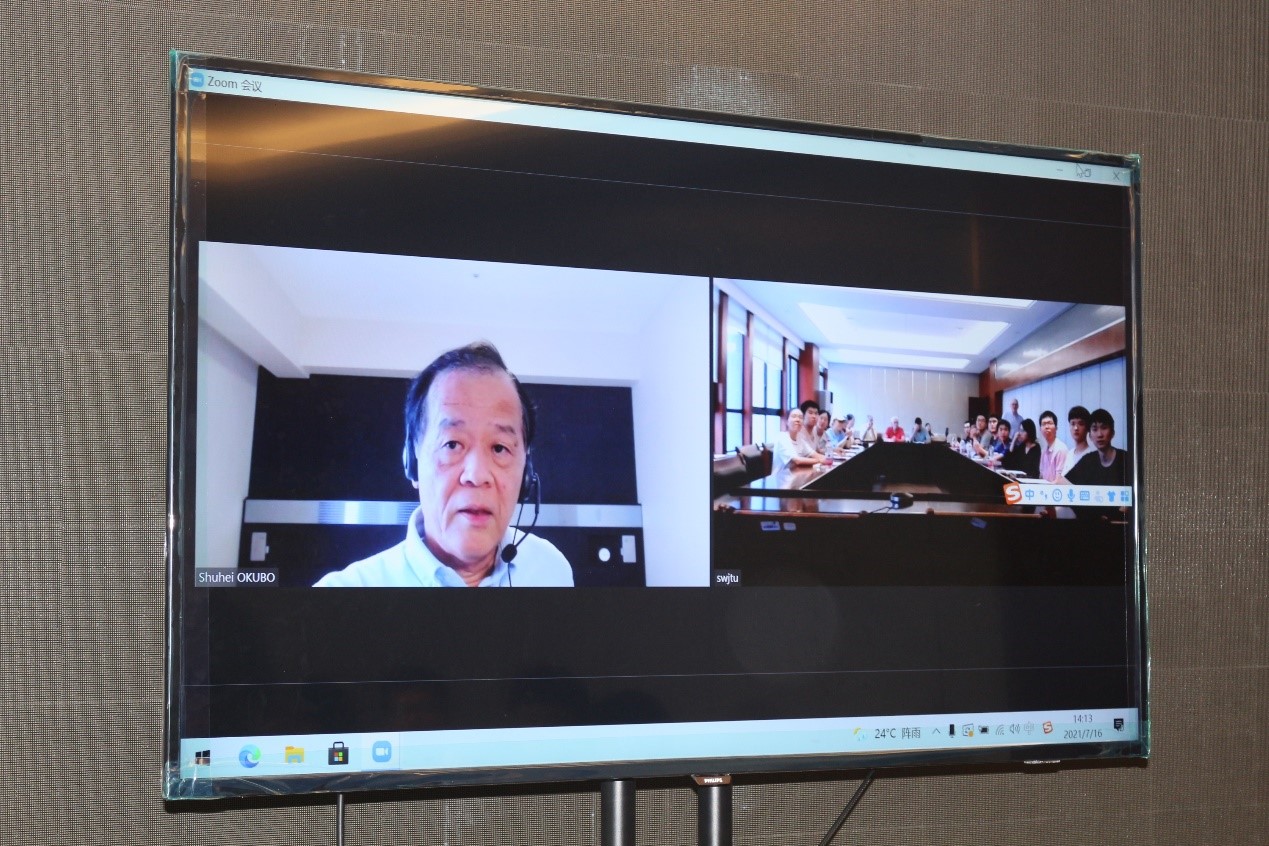 7月13日上午,Shuhei Okubo教授线上授课,围绕“What we know about Earthquake—and what it means to our Faculty”这一主题,通过对比、分析了地震的传播方式及震源机制,借助动画形象地展示了震后运动的形成机制,并讲解了其强度计算式。最后,他介绍了一个地震预警系统,并点出现代发展对人类生存的两面性。
