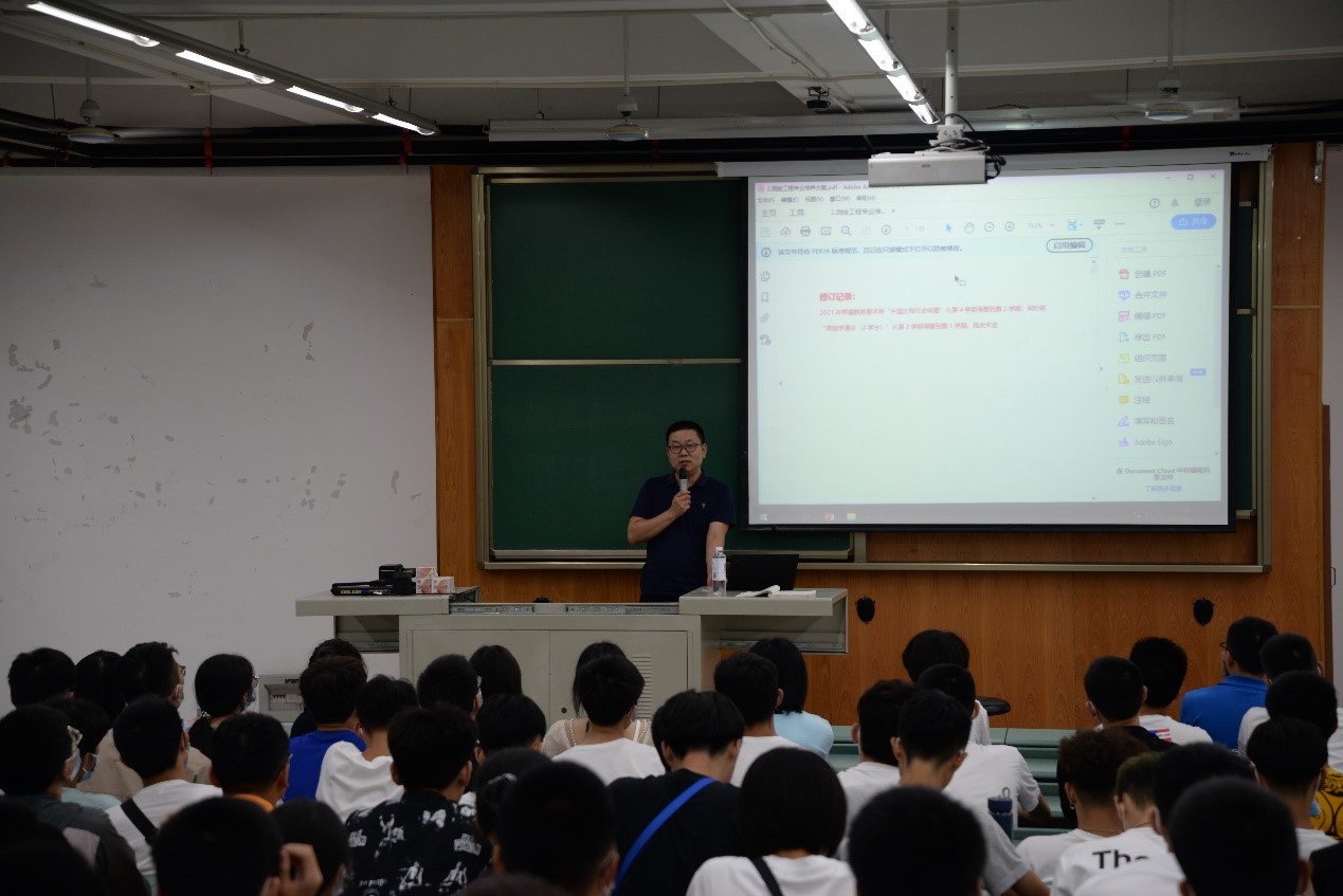 环境类专业在X4357开展2021级新生专业教育,本次专业教育由副院长兼消防工程系主任张玉春、院长助理兼环境科学与工程系主任赵锐、环境科学与工程副系主任(分管实验室)彭道平分别讲授。