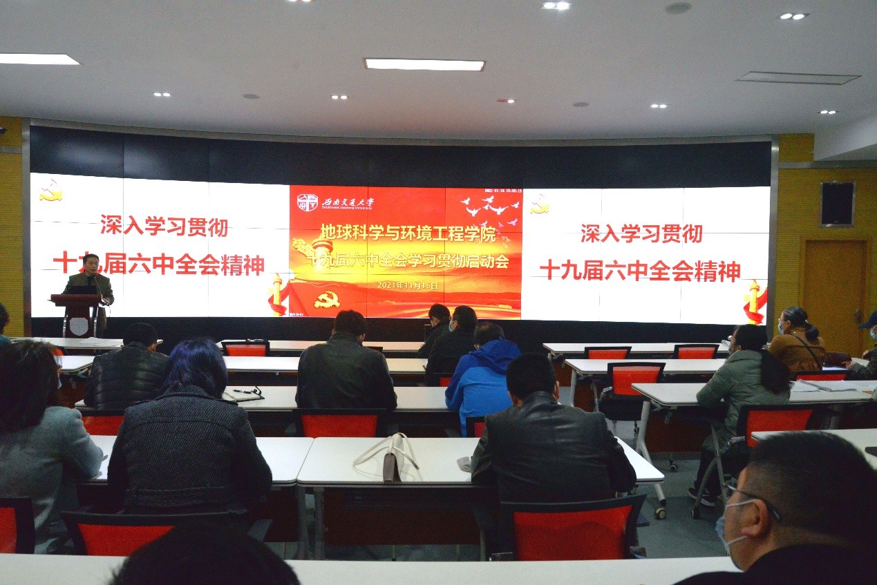 于X4243举行十九届六中全会学习贯彻启动会,学院党委书记关秦川、执行院长刘国祥等领导班子成员,教授委员会成员、教师党支部书记、学科带头人代表、各系(室、中心)主任、教师代表等参会。关秦川担任主讲人。