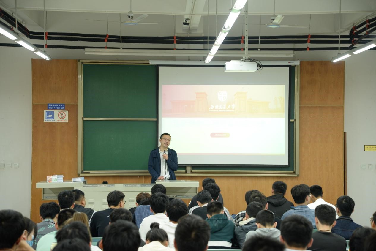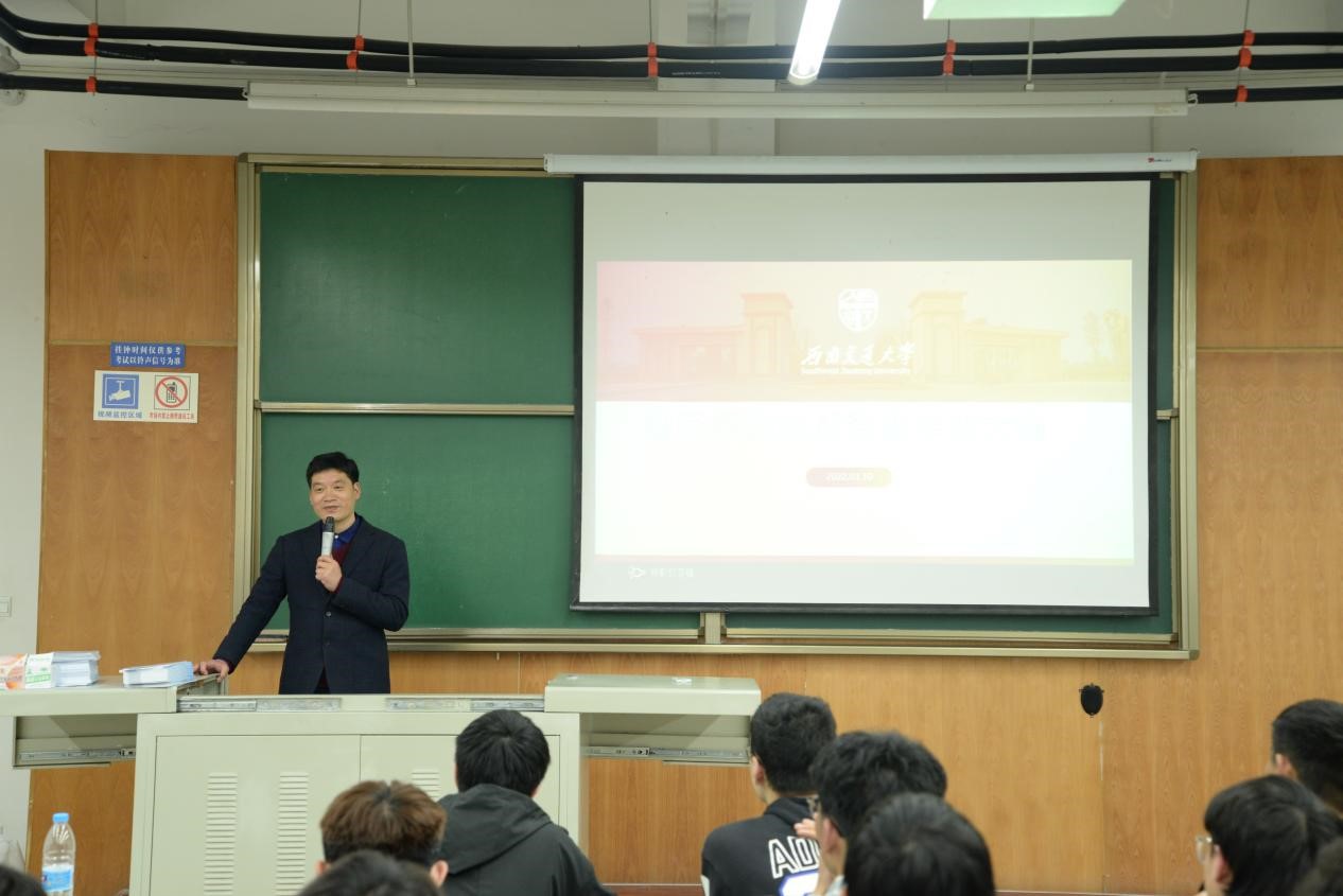 齐华教授首先介绍了地质专业的发展历程,接着从我校地质专业是地质人才供给端的重要阵地、地质专业在国民经济建设中的作用、在轨道交通建设与运营中的重要作用以及地质专业工作的特点等四个方面对该专业进行系统详细的介绍,使同学们对专业的突出作用、工作特点以及就业前景有了更深刻的了解。最后,齐华表达了对同学们的深切祝愿,希望同学们在大学里积极进步,成为有朝气、积极向上的大学生,努力学习成为社会主义合格建设者和可靠接班人。