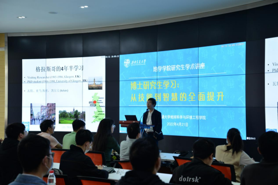李志林教授对博士研究生学习期间的有关问题进行系统阐述。他由自己的求学教学经历引出对“为什么大学要做科研?”、“为什么要读研究生?”、“为什么英美国家的博士要叫做PhD”的讲解,重点论述科学研究的本质及博士研究生要学习的五大方面内容:研究哲学、研究方法、研究态度、研究道德及研究智慧。李志林教授强调,要注重文章逻辑的畅通,注意排版问题,做到前后呼应,有结论,避免出现龙头蛇尾的文章结构。他进一步结合自己的体会引导同学们讨论“怎样能提高科学研究水平”,并指出,要有丰富的想象力,敏锐的洞察力,以及强大的执行力,以饱满的精神对待科学研究。