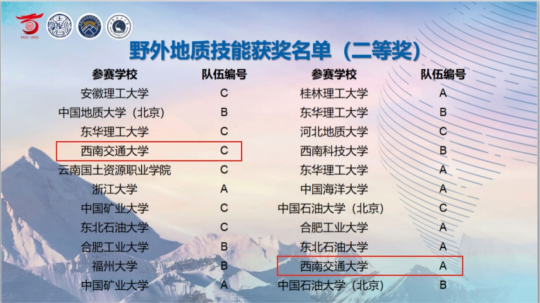 在经过多轮校内选拔、组内培训择优的基础上,我校自2021年8月正式组建了由地球科学与环境工程学院副院长赵晓彦教授领队,王世明、梁毅、裴秋明、覃礼貌等老师担任指导教师,6位资勘专业、3位地质工程专业本科生组成的三支参赛队伍,先后由8位专业课老师对参赛队员进行了多方面系统的培训,培训期间还组织队员赴理县、汶川等地进行了野外实测剖面练习,强化野外工作技能。参赛队员们也全力以赴,精心准备,以最饱满的状态迎接比赛。由王枥伟、彭俊岚、叶志虎三位同学组成的A队,张玉龙、邓承东、张雨晴三位同学组成的C队获得了“野外地质技能竞赛”二等奖。