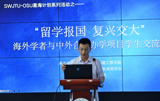 联合学校欧美同学会、维清励行工作室主办的SWJTU-OSU星海计划系列活动于犀浦校区4243多功能报告厅顺利举办,本次活动的主题为“留学报国,复兴交大”之海归学者与中外合作办学项目学生面对面交流会。