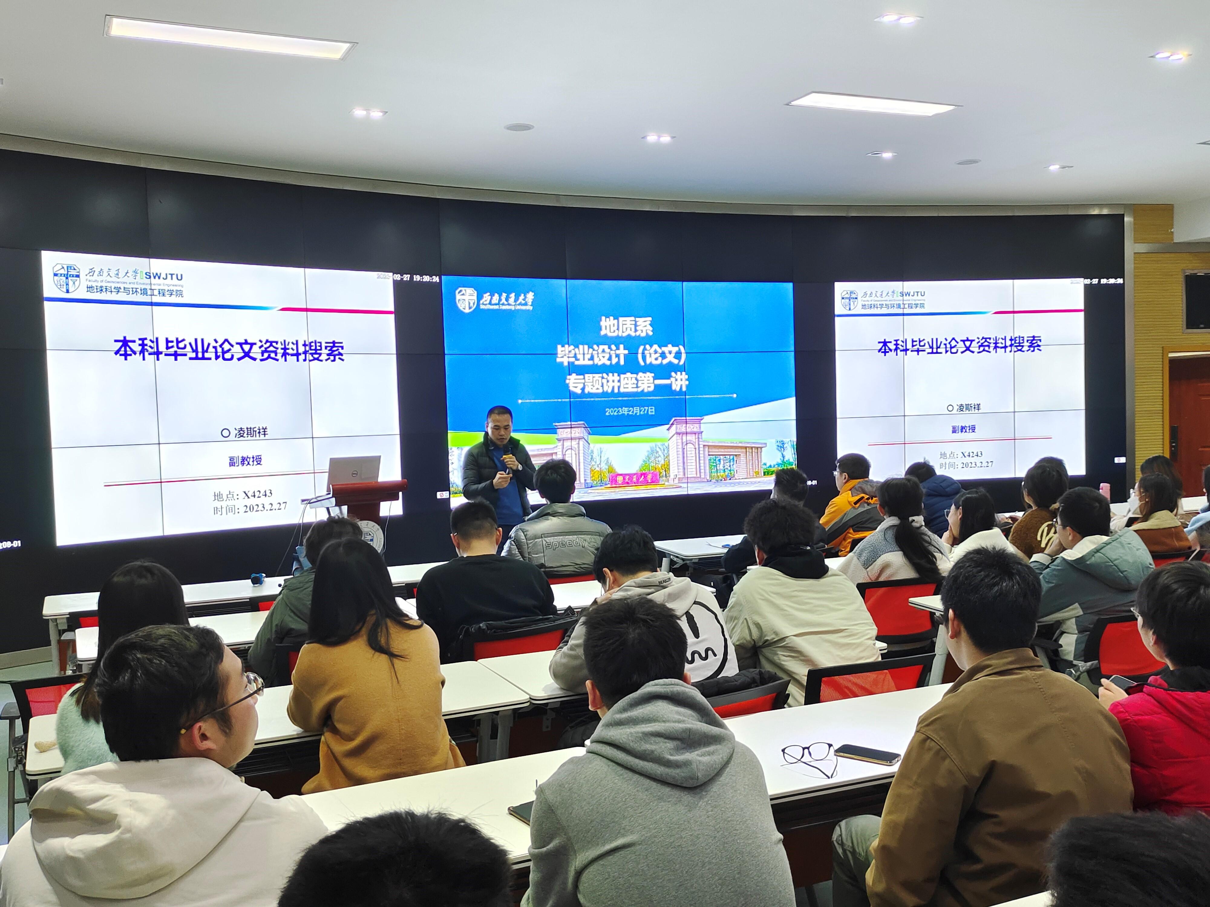 2023年2月27日晚,地质系于X4243顺利开展了毕业设计(论文)专题讲座第一讲,凌斯祥副教授为地质系的同学们讲解了如何进行本科论文资料搜索。讲座由地质系副主任张志厚老师主持,张云辉、胥鸿睿、程天健、沈亚萍、许钟元等青年教师共同参与,为同学们答疑解惑。