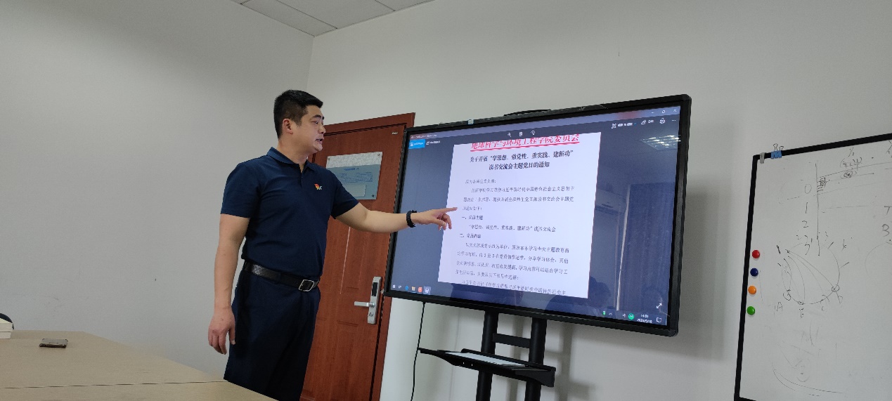 教工环境党支部于2023年5月18日开展了“学思想、强党性、重实践、建新功”读书交流会主题党日活动。活动由党支部书记苏凯主持。