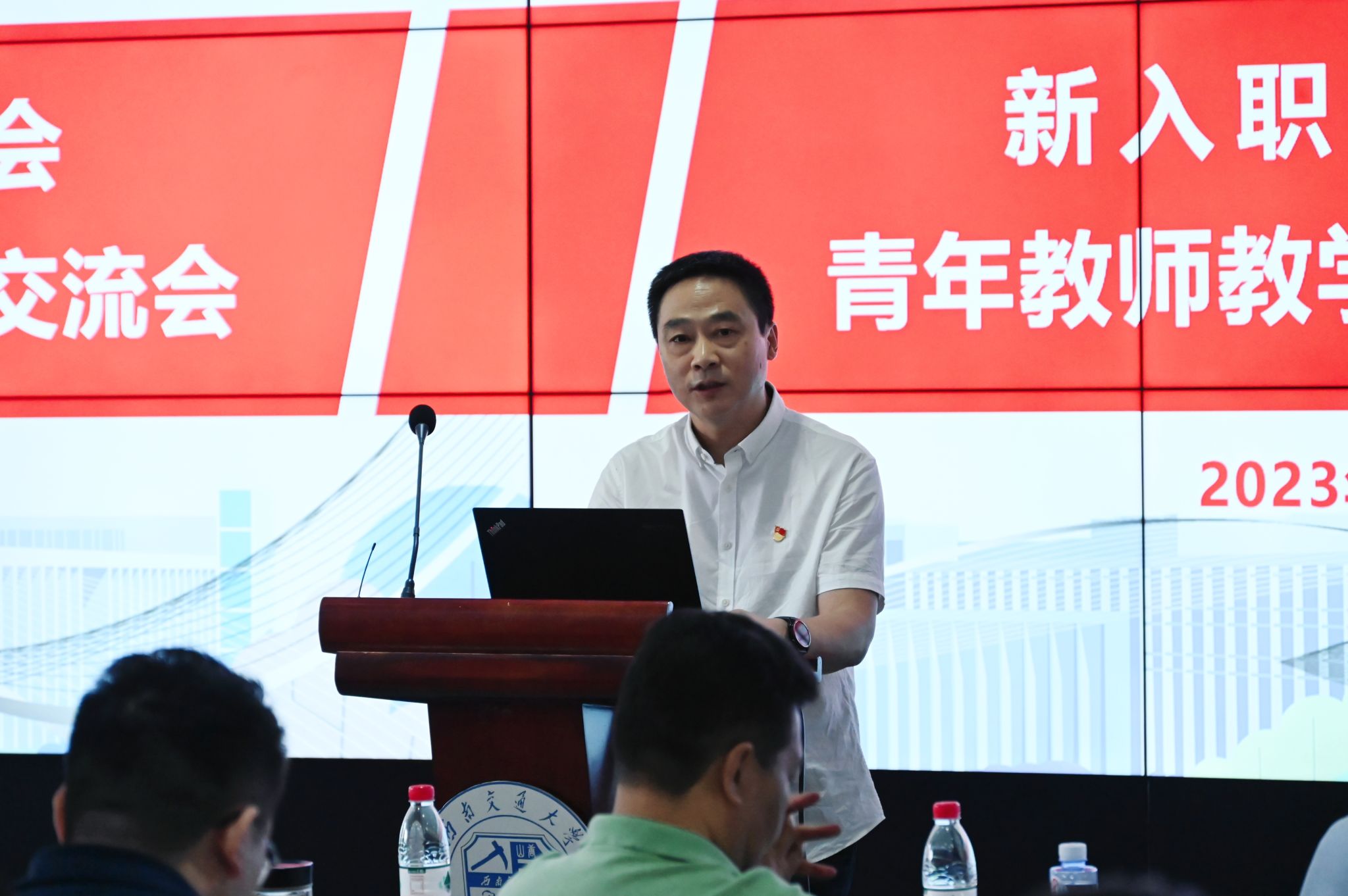 概况及发展情况,他从学院历史悠久、专业实力雄厚、国际化水平领先以及近年发展态势良好等方面让新入职老师们对学院的良好氛围有所了解,同时也告诫他们要重视肩上的责任和使命。针对青年教师可能面临的焦点问题,他提出了几点建议:为践行立德树人的理念,要“做一名有格局有情怀的好老师”;向前人求取经验,“自觉学习党史,铭记使命,甘当人梯”;在教师自身发展方面,他重点强调了“自主学习,反思优化”的措施及其重要意义。