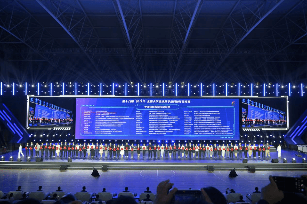 首次在“挑战杯”全国大学生课外学术科技作品竞赛主赛道取得特等奖殊荣。创造了学校在该赛事的历史最高成绩!