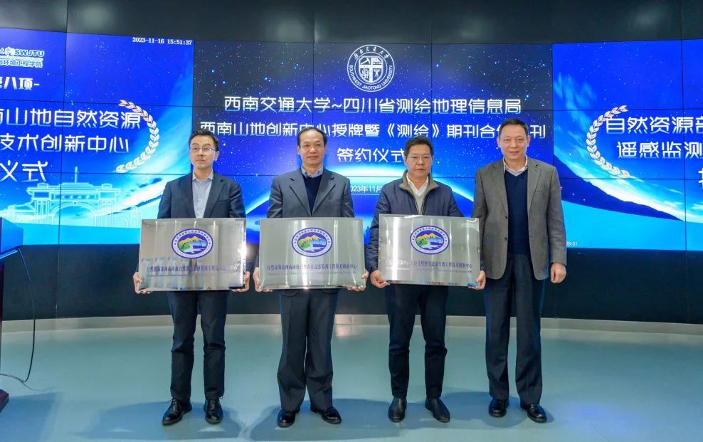 犀浦校区举行了自然资源部西南山地自然资源遥感监测工程技术创新中心授牌、《测绘》期刊合作办刊签约和《测绘》编辑部西南交大分部授牌仪式。四川测绘地理信息局党组书记、局长杨宏山,影巢