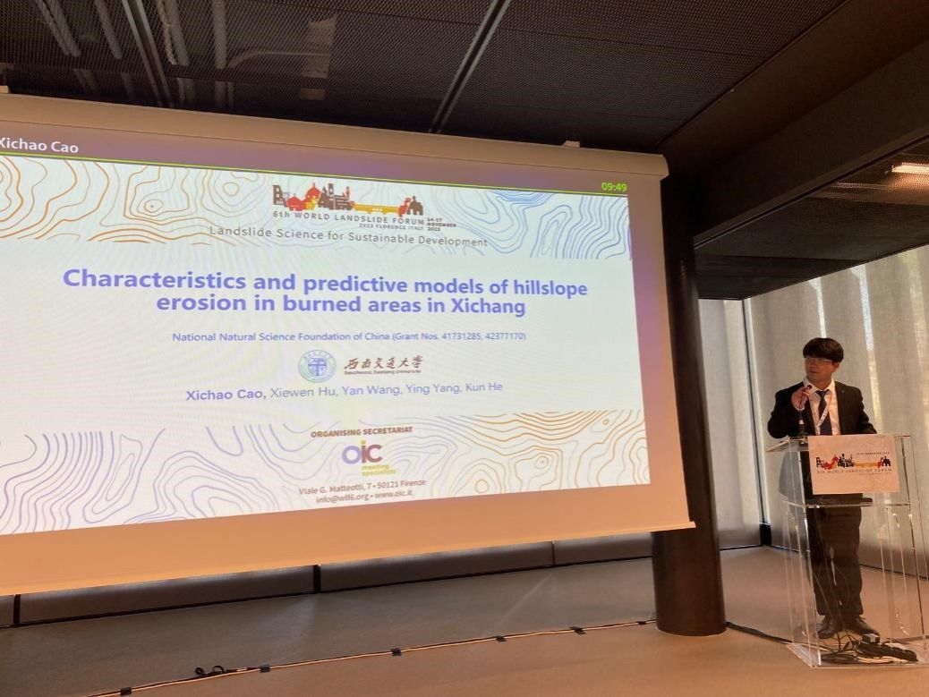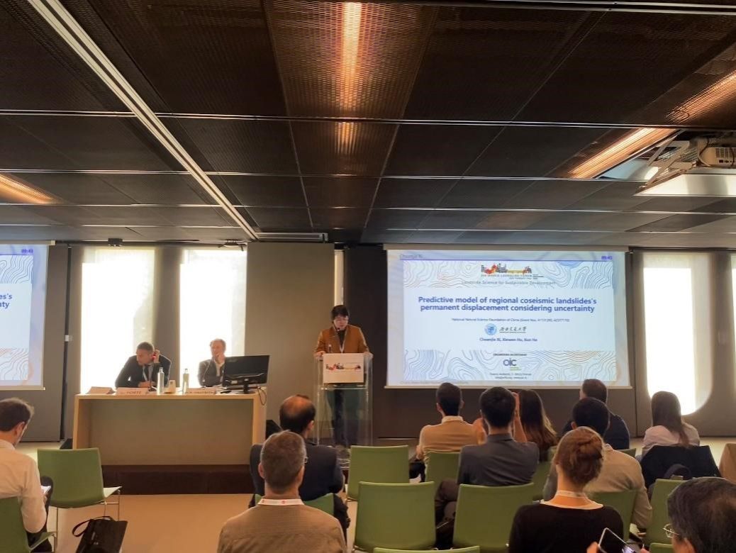 我院地质工程系胡卸文教授率何坤讲师及4位博士生参加了本次大会,就地震滑坡、火后泥石流灾害、高速滑坡动力学等研究成果与国内外学者进行了学术交流。博士研究生席传杰在“Advances in earthquake-induced landslide research”地震滑坡分会场作了“Predictive model of regional coseismic landslides’s permanent displacement considering uncertainty”的专题学术报告,博士研究生曹希超在“Wildfire, erosion and landslide in the framework of global warming”森林火灾次生灾害分会场作了“Characteristics and predictive models of hillslope erosion in burned areas in Xichang”的专题学术报告。博士研究生张仕林、周瑞宸分别作了题为“Dynamics of erosion and entrainment of the Rock Avalanche Boundary: a large-scale experimental and modeling study”和“Deformation characteristics and failure mechanism of a cut slope in Butuo County, China”的学术海报展示。各项研究成果获得了国内外专家学者的充分肯定和高度认可,充分彰显了我院师生科研成果和学术风采。