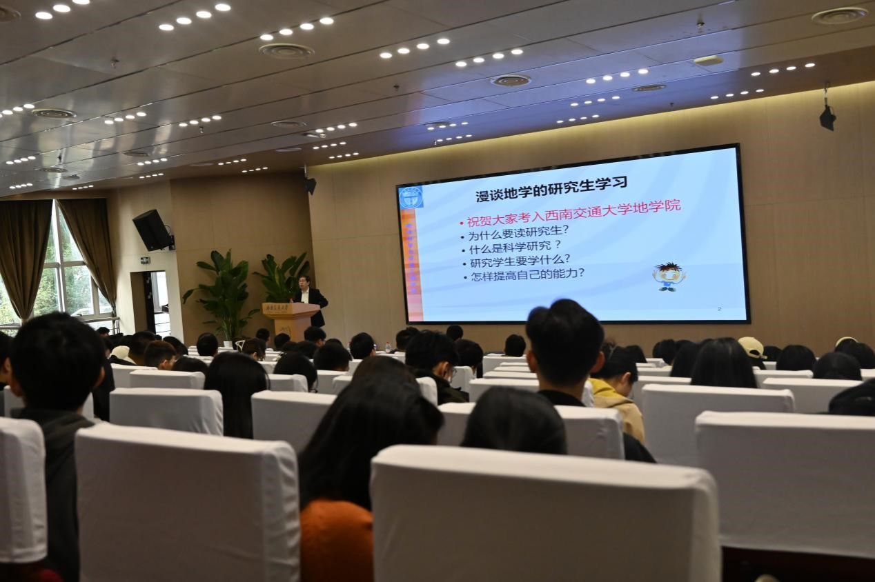 研究生会主办,地球科学与环境工程学院研究生会承办的镜湖半月谈活动在犀浦校区图书馆2号报告厅顺利举行,活动邀请了国家级特聘人才、我院名誉院长李志林教授作为主讲嘉宾,为大家作题为《漫谈研究生学习》的学术专题讲座。地学研会指导老师、院团委副书记崔宇龙,23级研究生辅导员何杨,22级研究生辅导员郑非,以及相关专业师生共计250余人参与了本次讲座。讲座由辅导员郑非主持。