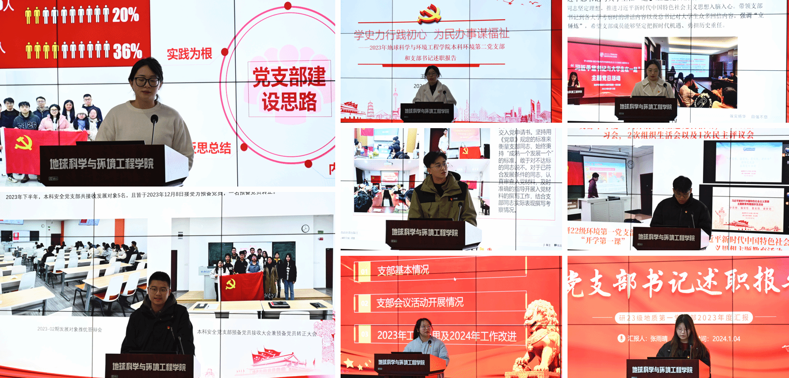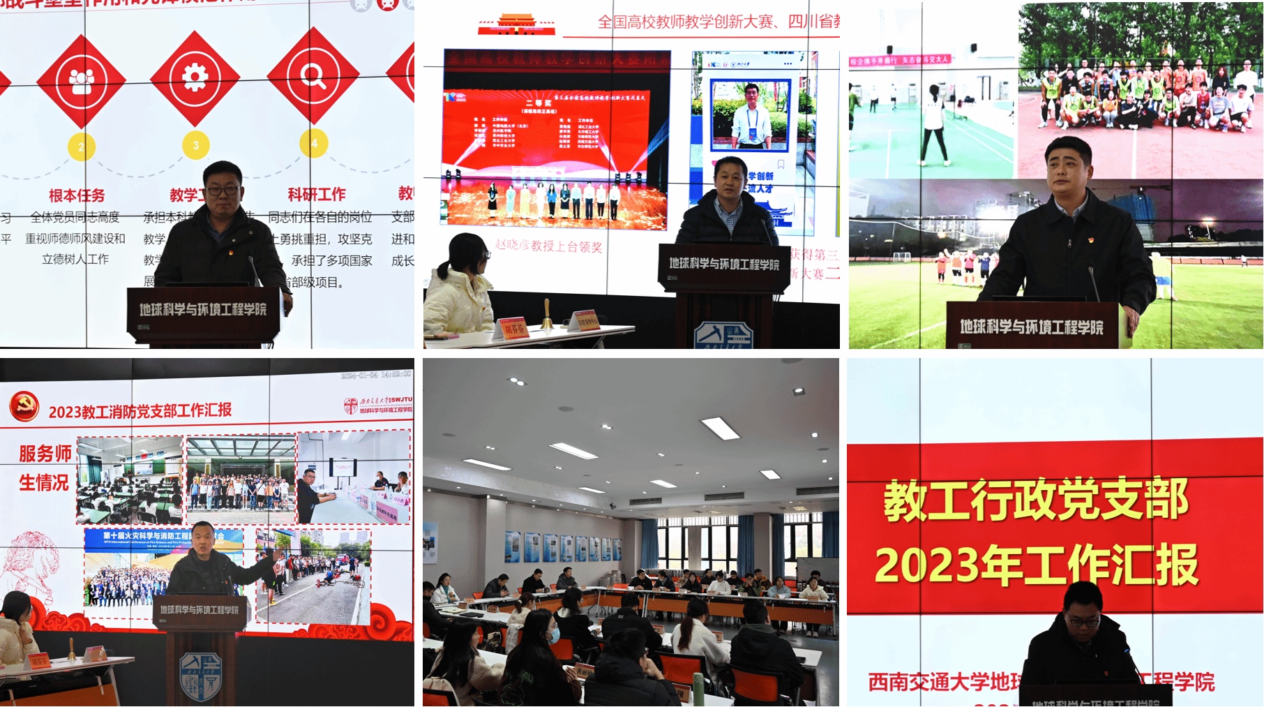 党委书记关秦川分别对教工党支部和学生党支部进行总结。关书记首先对教工党支部过去一年的工作给予了充分肯定,尤其在理论学习、教学科研、师德师风等方面均取得了显著成效。关书记强调,面对新时代的挑战和机遇,在学院的新一轮发展中,各教工党支部要继续发挥党建引领作用,结合各支部特点,聚焦学科建设、科研学术和创新服务,讲好“地学文化故事”,努力开创学院党建工作新局面。