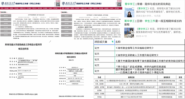队伍坚持研究型思维开展工作实践,秉持理论实践相促进的工作理念。积极申报立项“‘从川藏铁路看大国工程’——基于铁路建设实践的思政育人探索与实践”思想政治工作精品示范培育项目1项,申报“‘地学文化强基·铸魂时代新人’地学文化节”等大学生日常思想政治教育精品项目3项,近两年申报立项学工专项科研项目14项,产出获奖工作案例9项(一等奖1项、二等奖3项,三等奖3项、优秀奖2项),积极发表工作研究论文与多彩学院、扬华微语等文章多篇,做到了以研究深化认知、促进实践、推动工作。