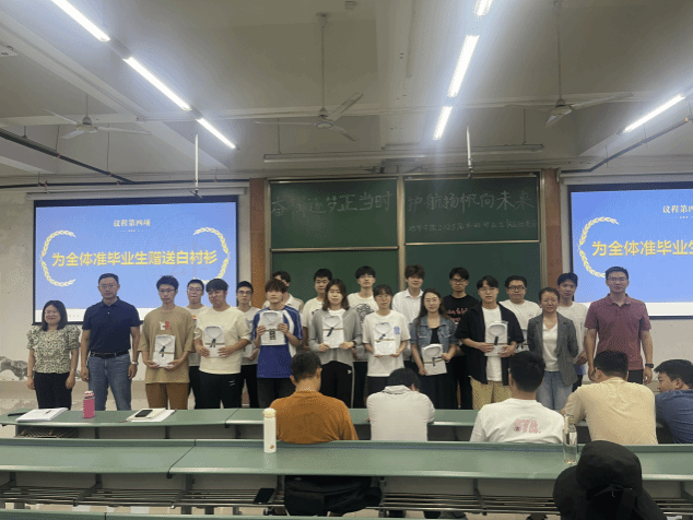 最后,学院为全体2025届本科毕业生准备了白衬衫,郑波为学生代表赠送白衬衫,帮助大家提前树立正确的就业态度与积极姿态,让他们能更加积极和自信的面对就业的到来。