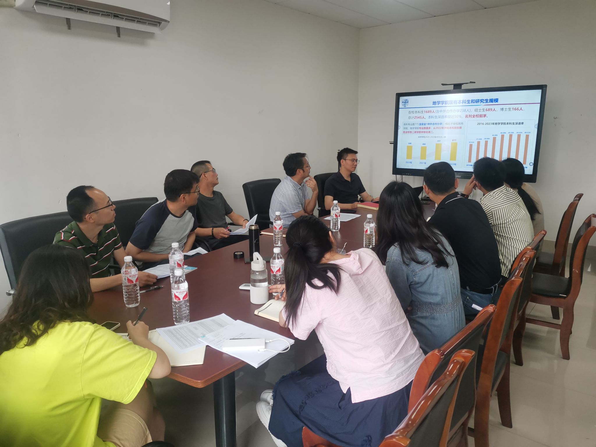 郑波从学院2022届、2023届毕业生就业数据切入,就测绘类学生辅导员情况、学生基本数据、重点关注学生情况等作详细介绍,并就2024届毕业生的就业数据逐一分析,对学生“二战”考研、家校联动就业工作、第二学士学位招生、研究生落实单位、测绘女生就业、博士结业拿证等问题进行深入剖析。郑波表示,测绘学生占学院的“半壁江山”,学院领导对测绘学生升学就业工作高度关心重视,希望听取多方建议,推动就业率与深造率继续上升,联合促进育人实效。