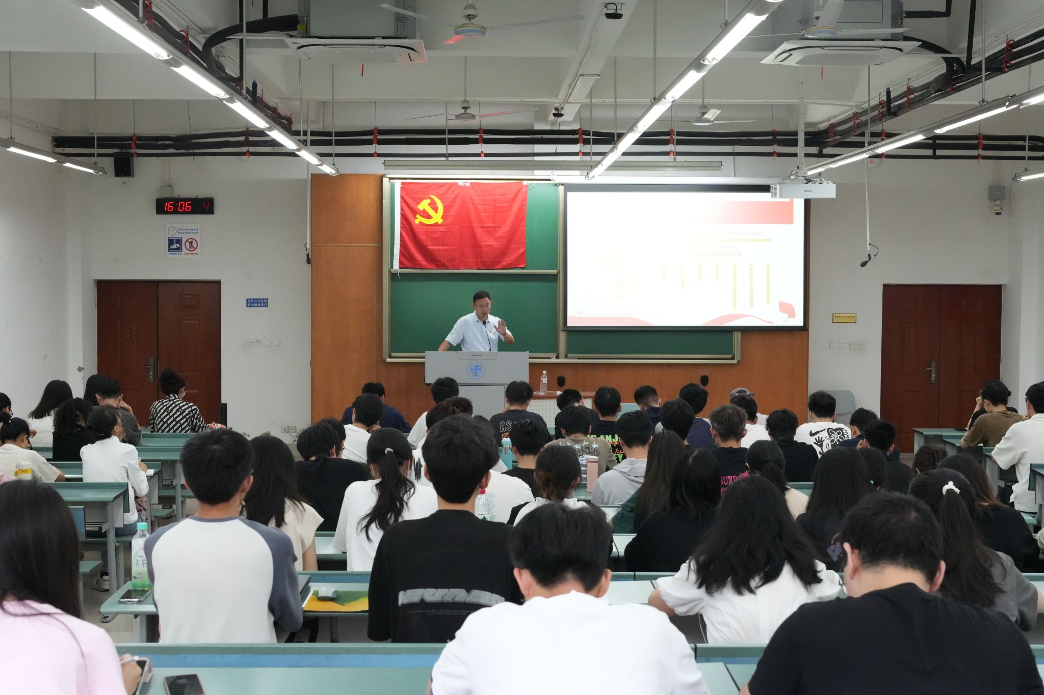 党委副书记、纪委书记郑波同志主讲,本科测绘、地信、遥感党支部全体党员、入党积极分子代表参加。