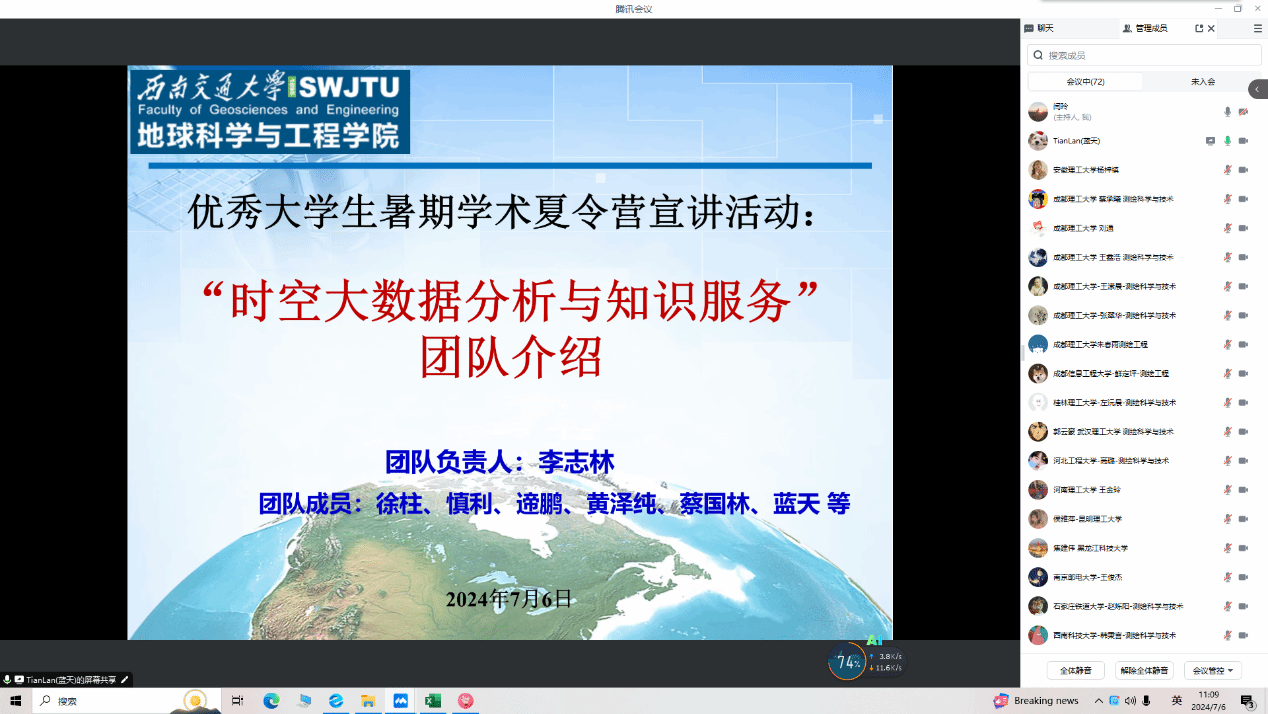 举办了2024年全国优秀大学生暑期云夏令营。本次夏令营共有来自全国42所高校的78名优秀本科生全程参与。通过夏令营,同学们对西南通大学以及地学学科有了更深的了解和认识。