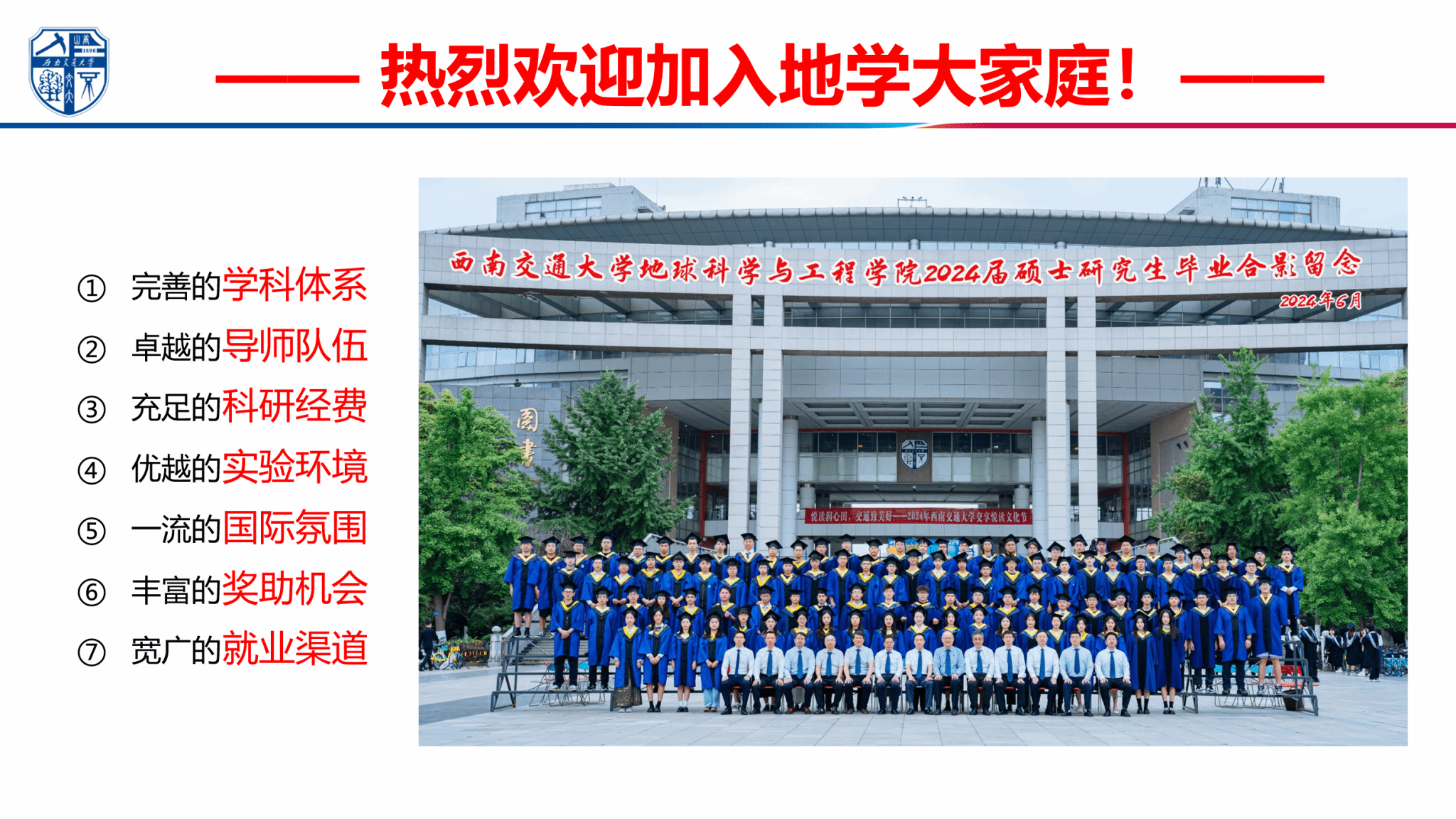 朱军副院长介绍了学院总体情况及招生政策。他首先回顾了学院的历史与发展,介绍了地质、测绘、安全学科和专业建设情况,科研与育人成果成效、人才培养软硬件环境,招生政策与奖助学金,毕业生去向及就业情况等,并诚邀全国的优秀学子加盟交大地学。