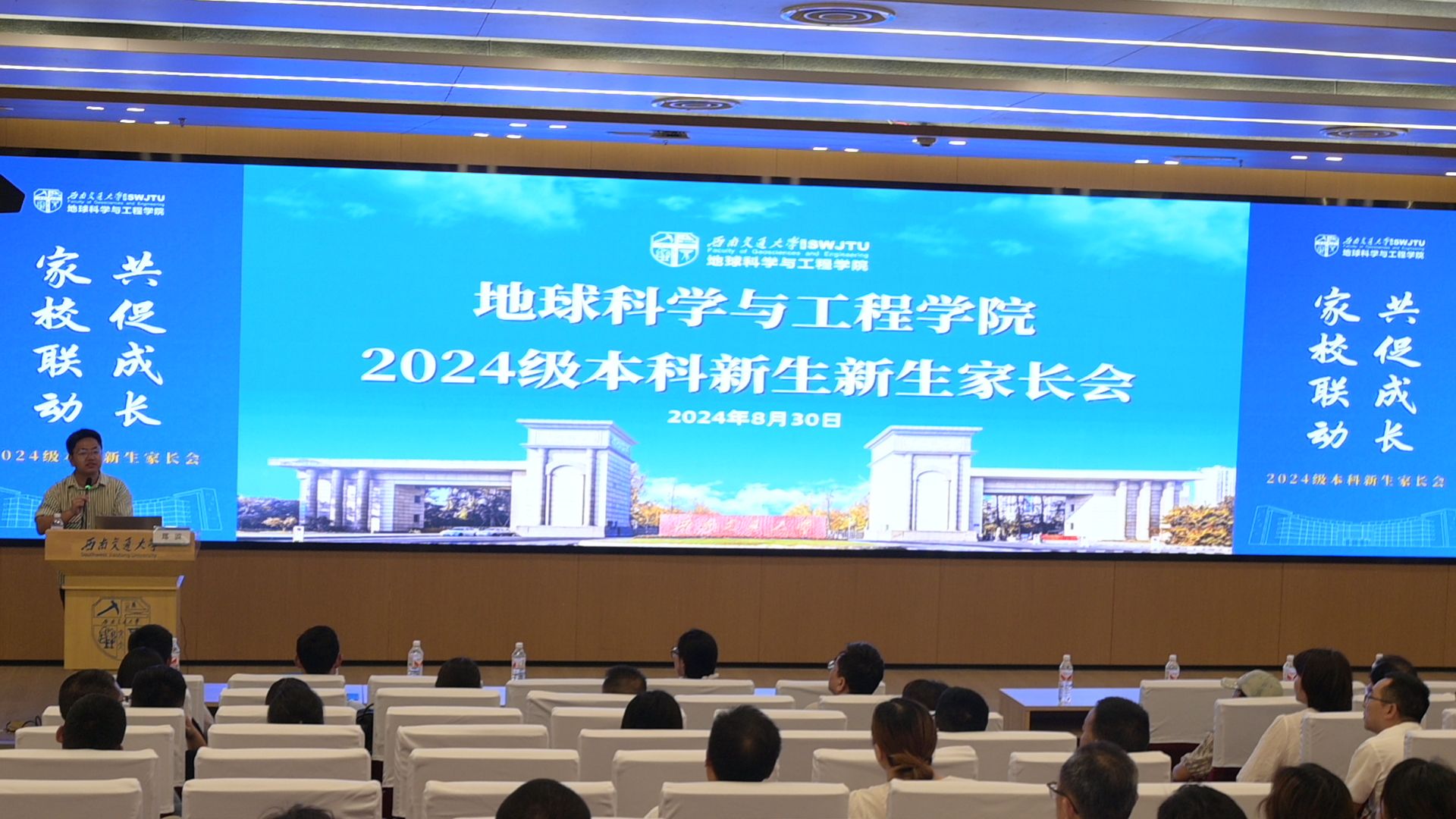 犀浦校区图书馆一号报告厅举办2024级新生家长会,旨在帮助家长了解学院学科建设情况以及学生的未来规划方向,促进家校之间建立桥梁,共同推动学生成长。会议由影巢