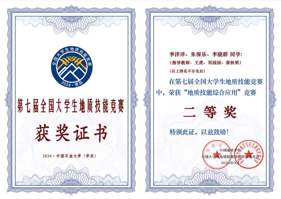 成立专门的赛事组委会,由赵晓彦副院长担任领队,地质系刘园园、裴秋明、王虎、芦飞凡、王世明、覃礼貌、梁翼等老师担任指导教师,全面负责备赛工作,经过院级、校级层层选拔,最终来自资源勘查工程/地质工程的陈启炼、甘寓同、张轶飞、孙铭鑫、孔荣森、付亚鹏、李洋洋、朱保乐、李骁群9位同学(3支队伍)进入决赛。9月8日进行了颁奖典礼,我校获一等奖2项,二等奖1项,为我校参加此赛事以来的最好成绩!展现了我校地质学科学生扎实的专业基本功和良好的精神风貌。