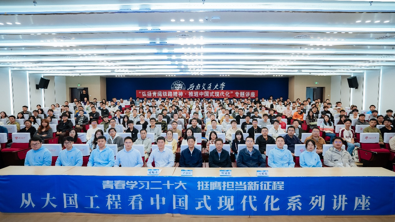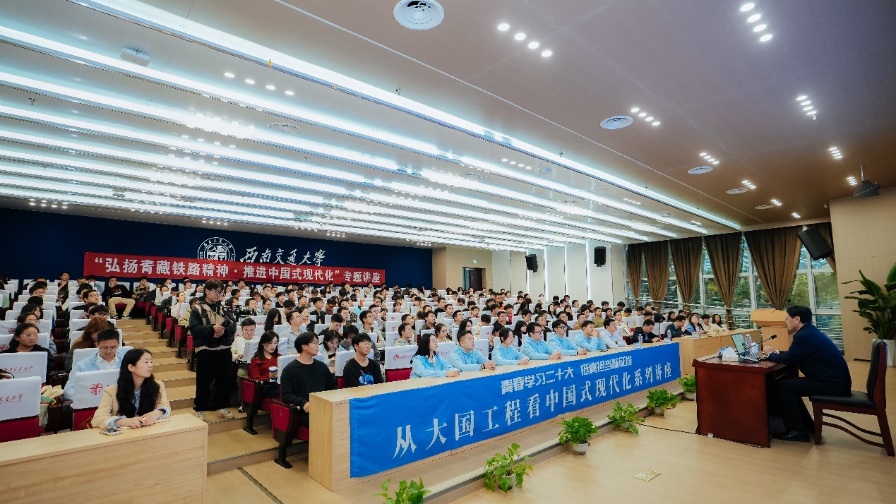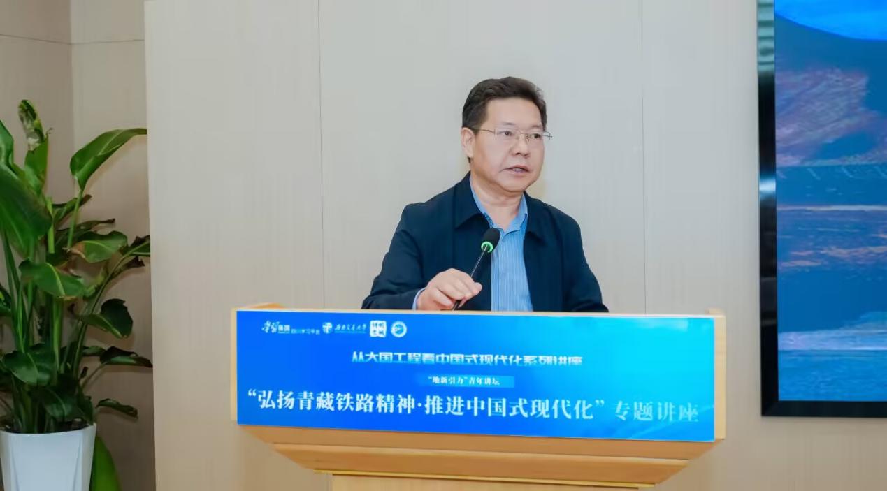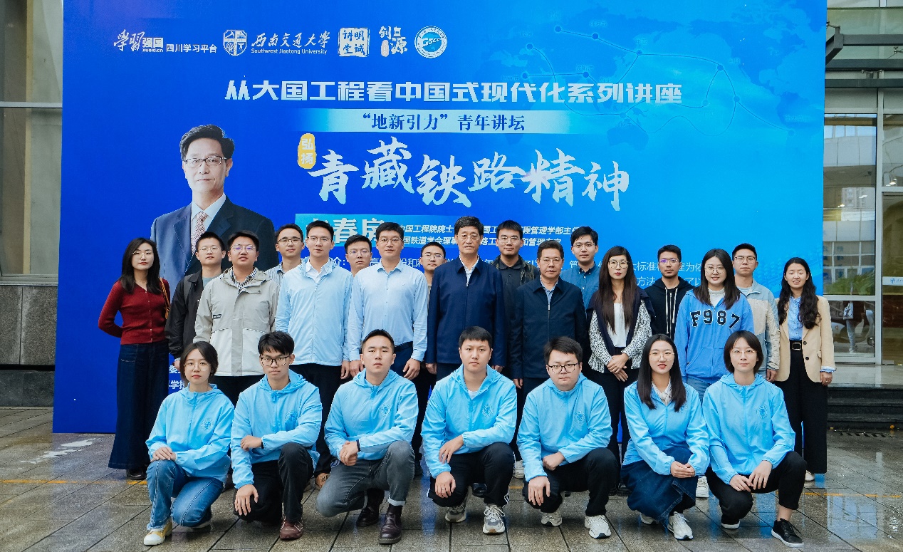 10月18日下午,在犀浦校区图书馆二号报告厅,学校特邀中国工程院院士卢春房做客“从大国工程看中国式现代化”系列讲座“地新引力”青年讲坛,以“弘扬青藏铁路精神”为题,给现场师生们带来了一场充满爱国主义情怀、直击心灵的思政报告。影巢