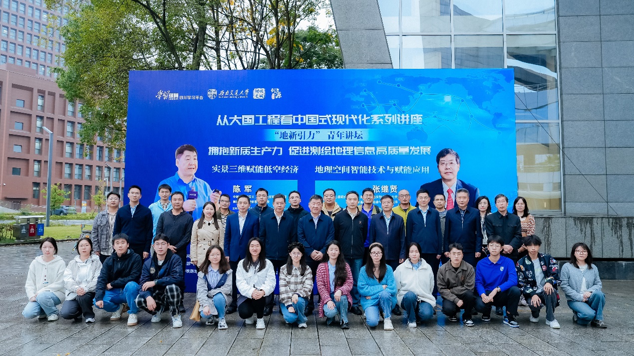 陈军院士以"实景三维赋能低空经济"为题,讲述了“数据为王、应用为本、创新为要、安全为基”,加快推进实景三维中国建设,以数据之治助力数字生态文明建设。陈军指出,以测绘为手段获取的时空信息,是形成新质生产力的数字空间底座,是推动数字化转型、赋能高质量发展的重要基础数据要素,并以“低空经济”为例,阐述了实景三维赋能新质生产力所发挥的重要作用。陈军表示,以时空信息助力数字化转型、赋能高质量发展意义重大,任重道远,且大有可为。他勉励在场师生坚持创新驱动,要始终把创新作为最大政策、最大动力,放百年眼光,集创造之力,下好创新“先手棋”,攻克关键核心技术,塑造新动能,开辟新赛道,这样才能占领先机、赢得优势。